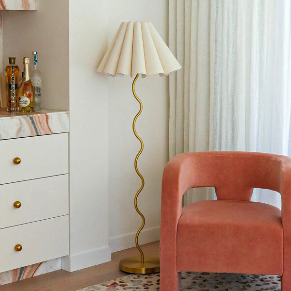 Lovers of our favourite statement table lamp will adore this new addition... The Cora is now available as a Floor Lamp. Featuring a beautiful vintage inspired linen fluted shade, with a stunning squiggle base, this lamp will be the focal point of any room.