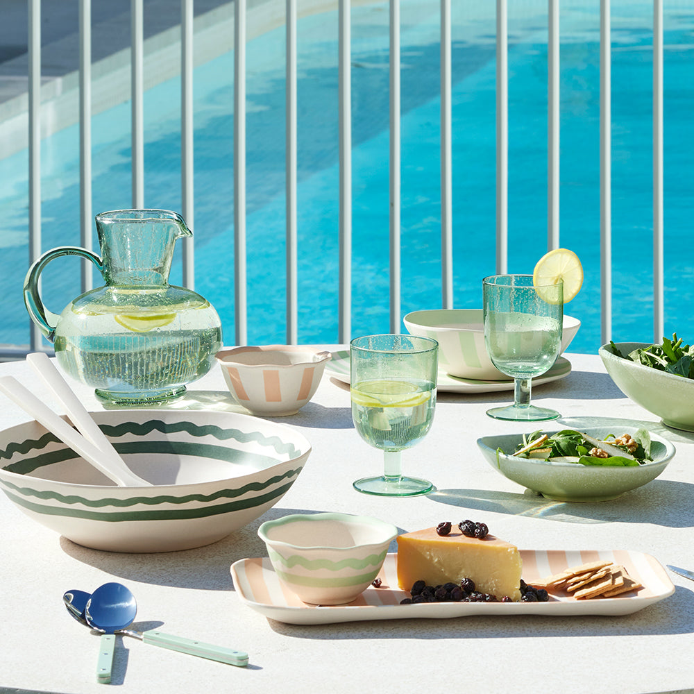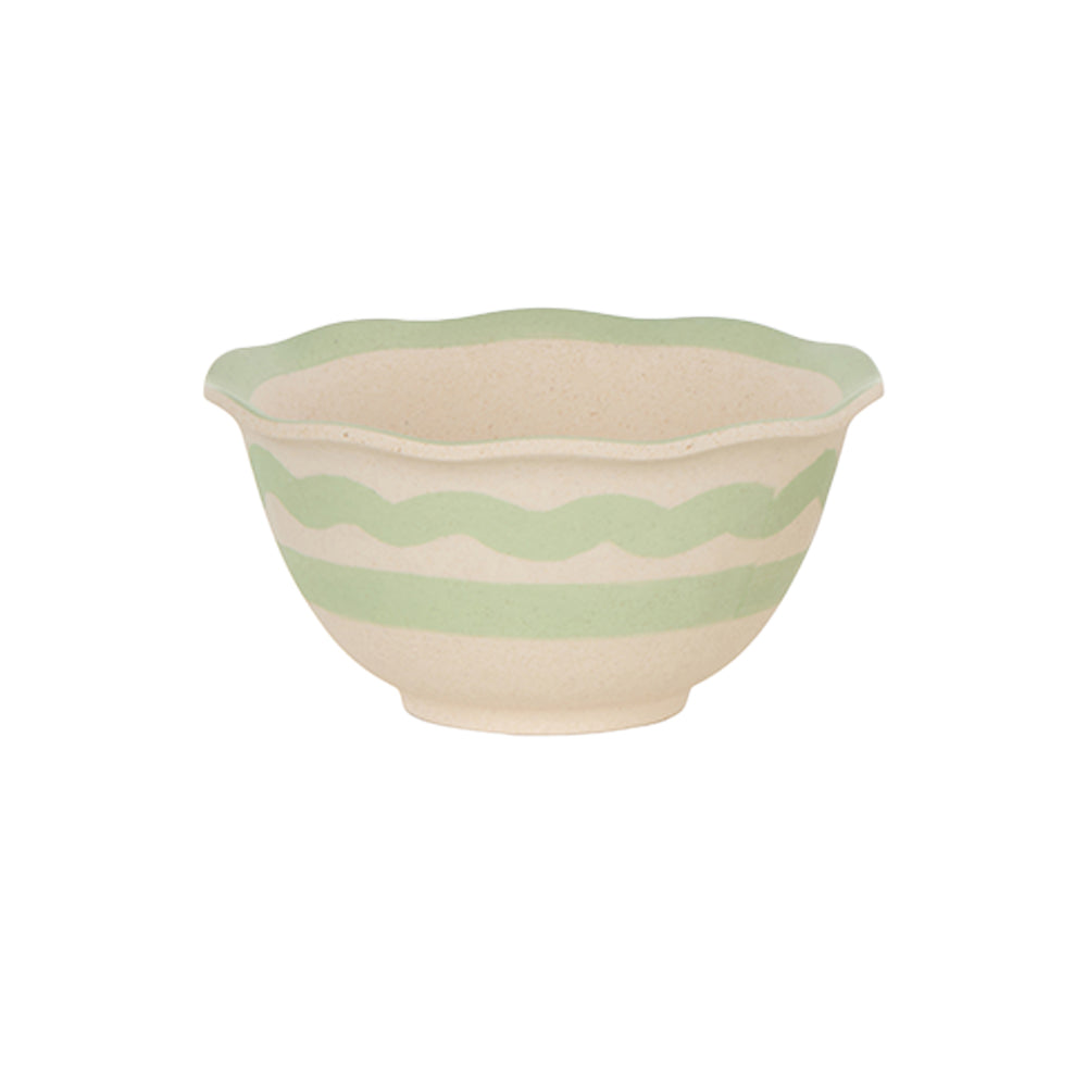 Bringing playful whimsy to your entertaining, the Saltara Condiment Bowl features a wavy rim and a wiggly striped mint design. Quality to the touch, it's made with sustainable bamboo fibre, making it strong, lightweight and durable.