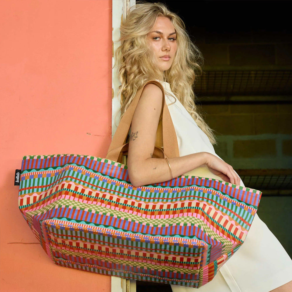 Kollab's Beach Bags are reinforced to handle the everyday and more. Use as a beach bag, tote bag, overnight bag, or for a stylish storage solution. A generous size, the beach bag can handle it all.