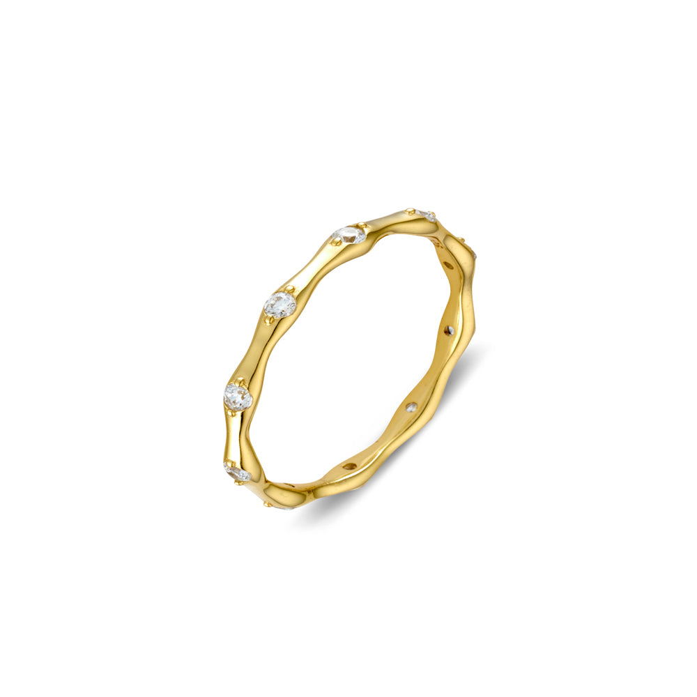 Featuring a thin, abstract band with spaced cubic zirconias.