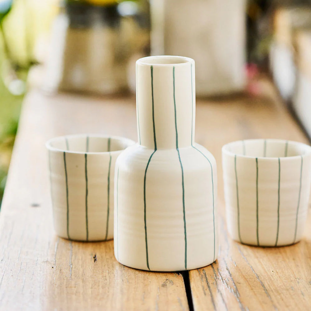 Coastal Junction Carafe Set - Cream/Green Stripe