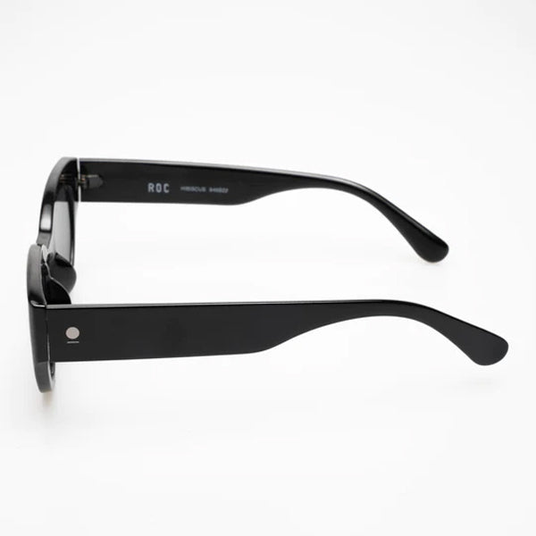 Ready to strike a pose? Hibiscus is. Channelling retro glam with its thick, all-black frame made from 100% post comsumer waste. These shades won’t shy away from the limelight. And with 100% UV protection in its smoke lenses, you won't need to either. And a sustainable protective case and cleaning cloth.