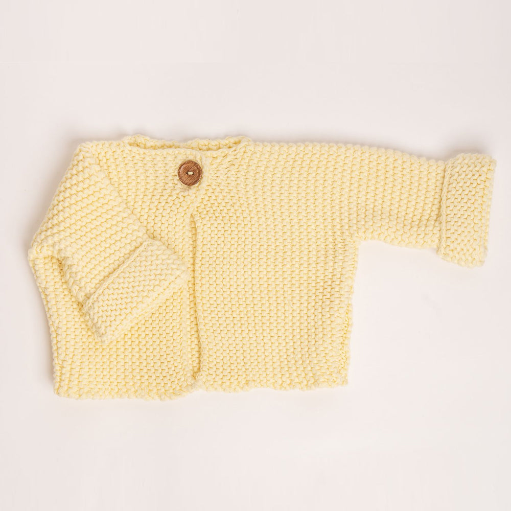 Elf Garter Stitch Baby Cardi - Yellow