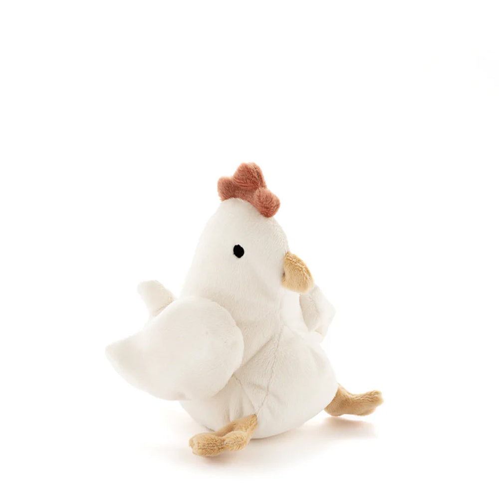 Henrietta the Hen is a true food snob, only pecking at the finest organic grains. She’ll turn her beak up at anything less. On the Nana Huchy Farm, she’s not fond of the cats, eyeing them suspiciously as they prowl about. Henrietta believes the felines have sneaky plans so she cautiously clucks around the garden, staying safe from their prying eyes.