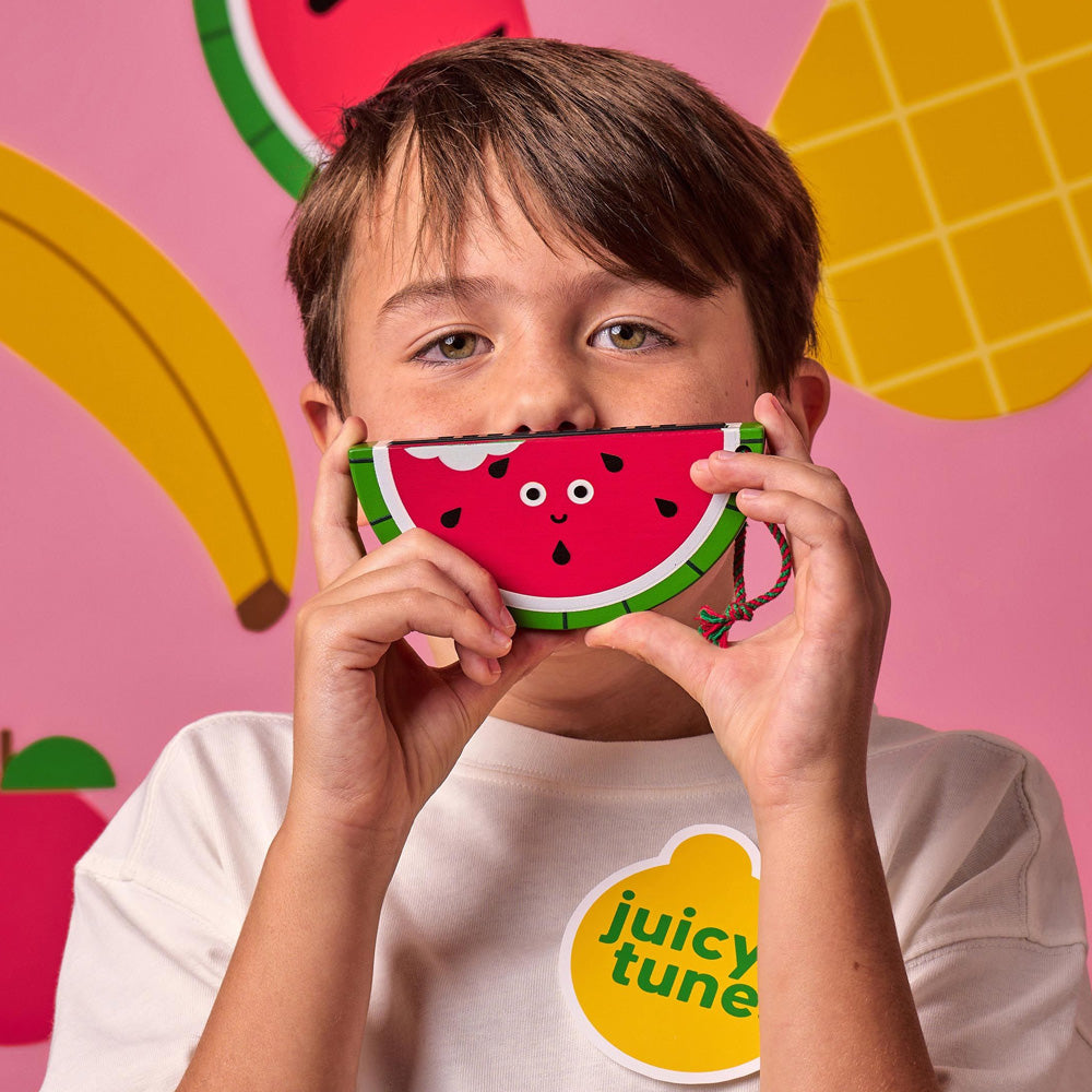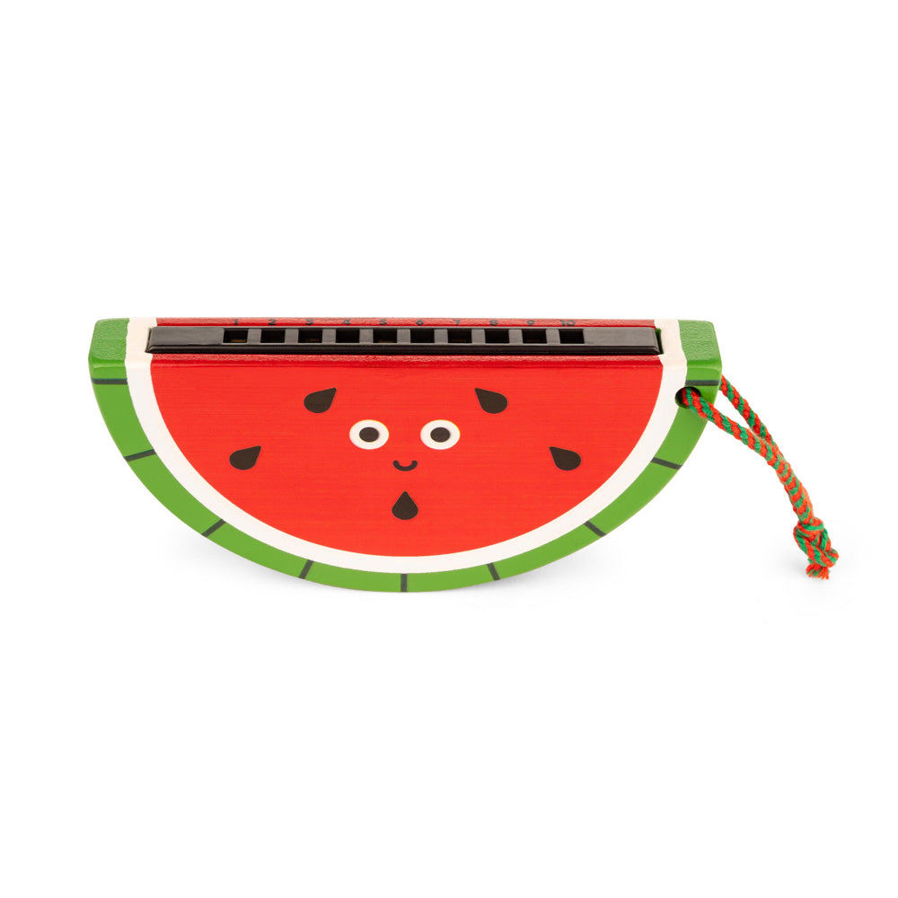 Play sweet tunes with a fruity twist! This Watermelon shaped Wooden Harmonica features a cute little face, and a wrist strap so you can always keep it handy.