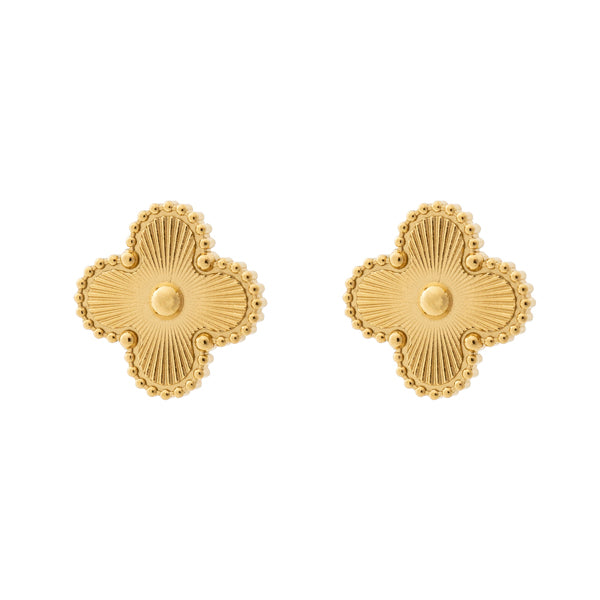 The Murphy Gold Studs feature a sunburst design inside this season's favourite clover shape, surrounded by ball detail.