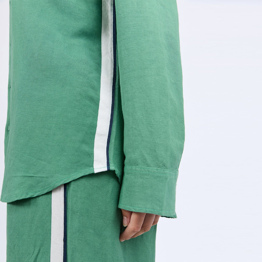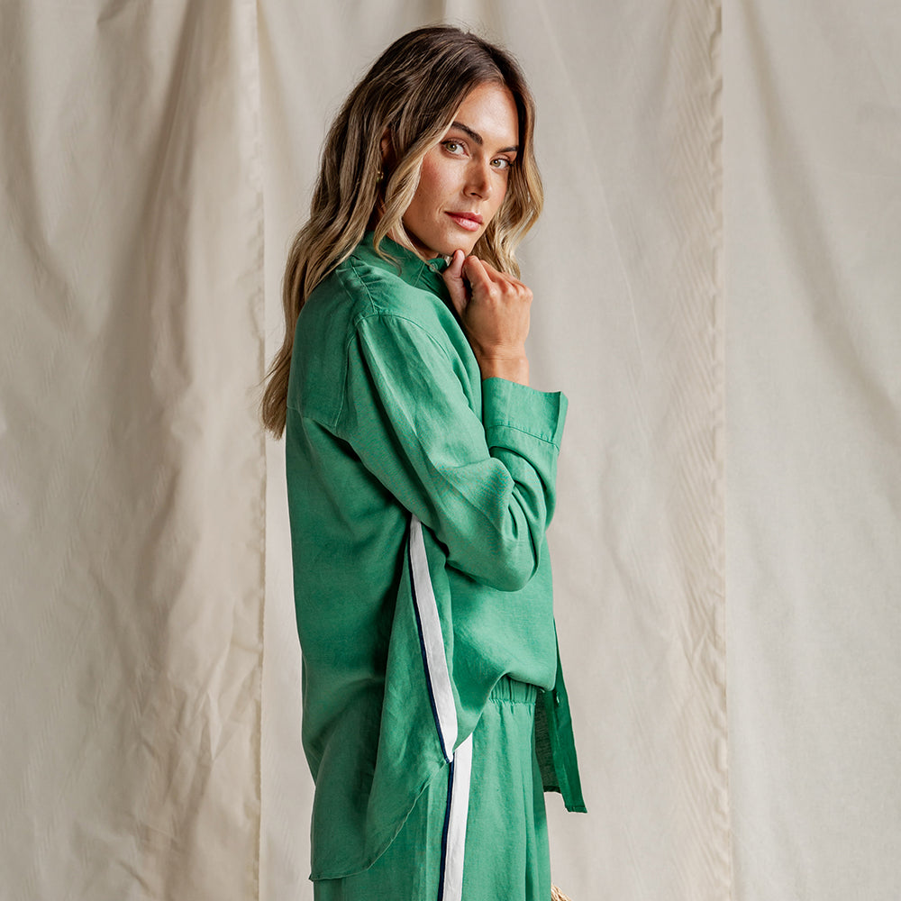 The Elemental Shirt (Foxwood Clothing) blends laid-back style with a sporty edge. Made from a breathable linen blend, it features classic buttons and collar, a handy chest pocket, and sleek side tape details for a modern twist. Easy to wear and made to move with you.