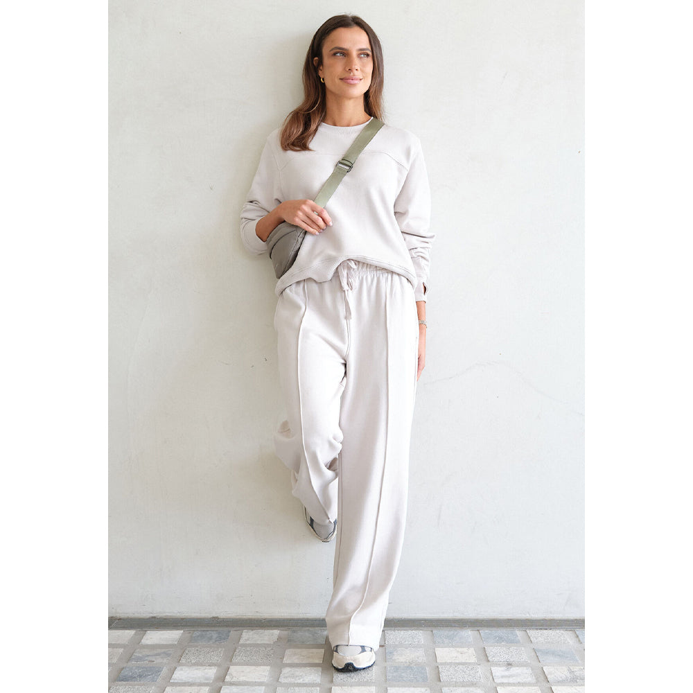 Gracie Relaxed Pin Tuck Trackpant - Almond