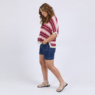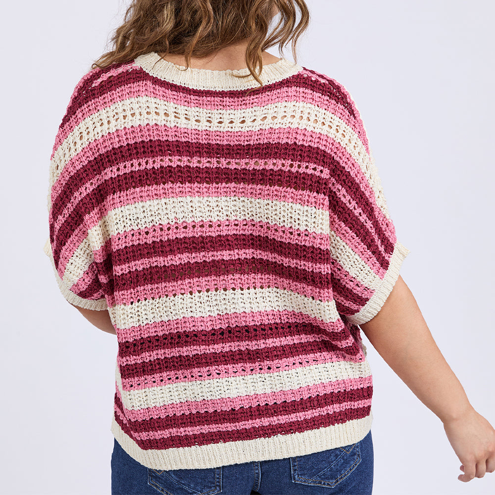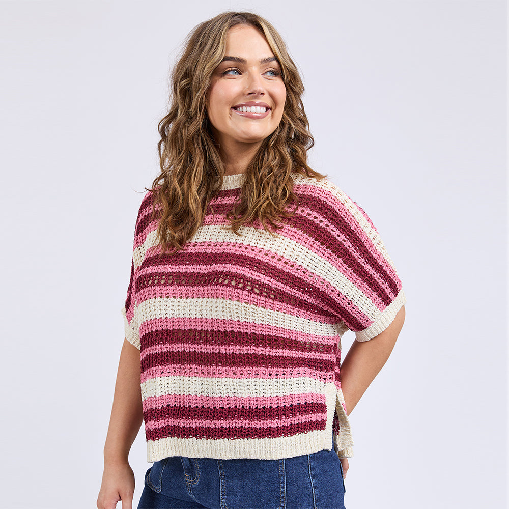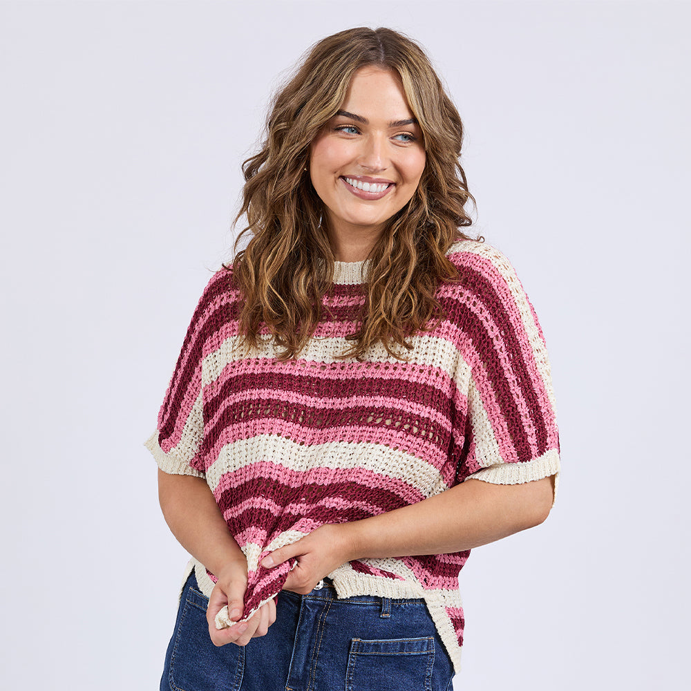The Striped Knit Top (Elm Lifestyle) is a pretty, lightweight, short sleeve knit ideal for transseasonal wear for work and play. Pair with your favourite denim to complete the look.