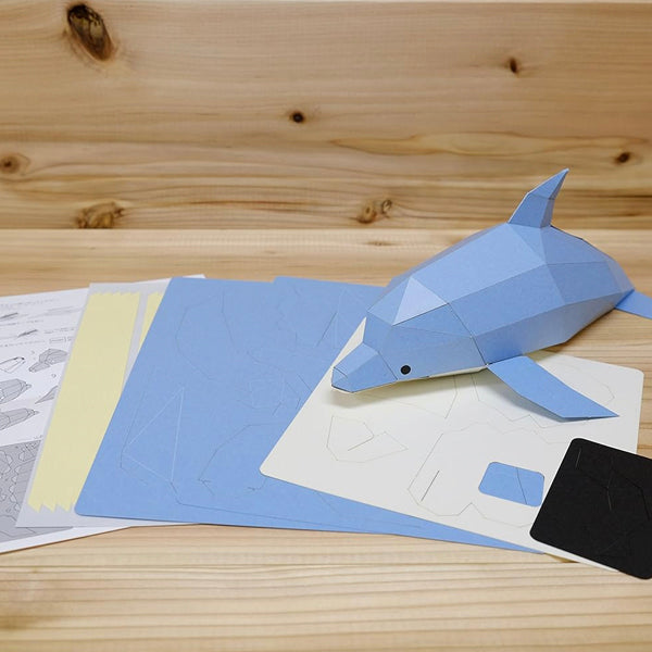 The pre-cut card templates fold, slot and tape together to create a small paper dolphin you'd proudly display on your desk, shelf or little one's bedside. Not just for kids, this paper project is for all craft lovers.