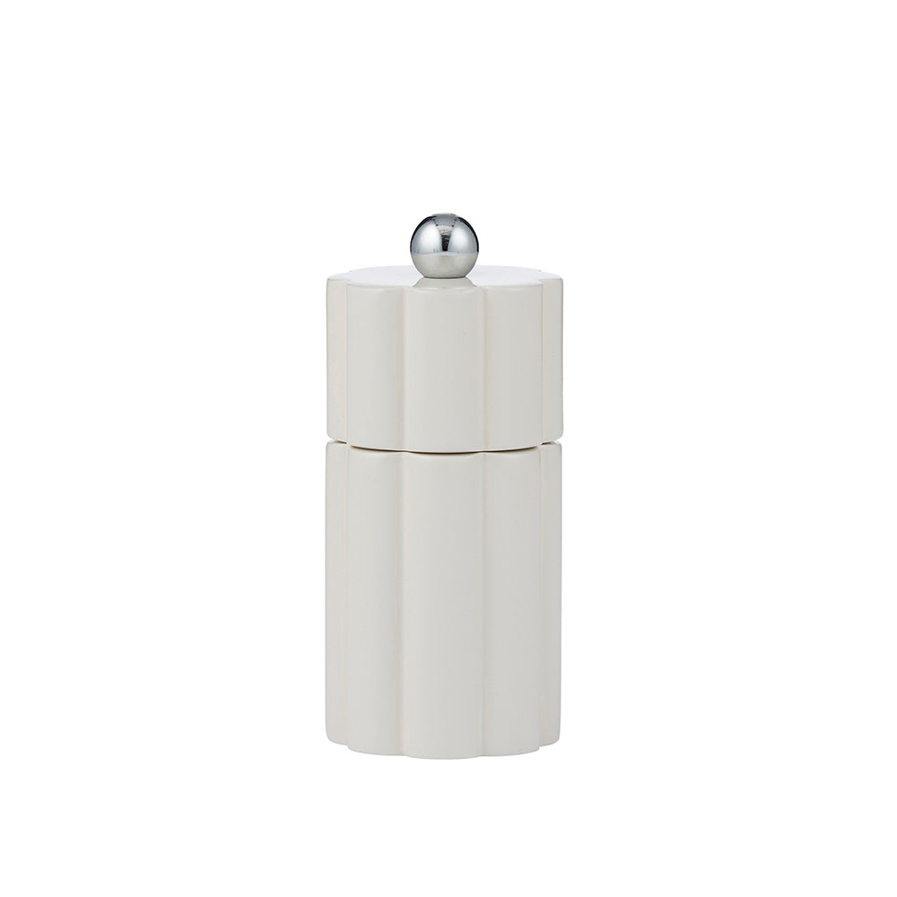 The Omega Salt + Pepper Grinder adds a practical design element to your table setting, with a short, curvy columned body, and smooth twist grinding mechanism.