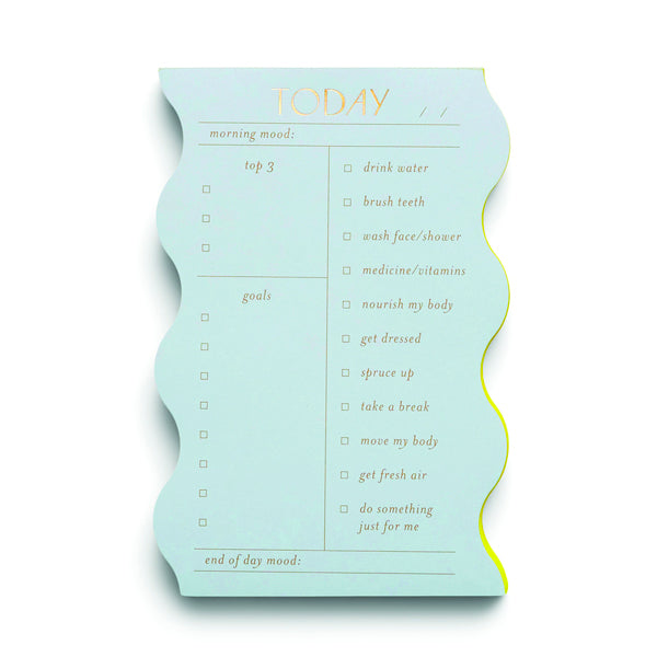 Our Wavy Daily Notepad makes your day-to-day chores more purposeful, and prompts you check in with how you're feeling. Featuring wavy detail and colourblock edges. If you love a list, this is for you.