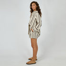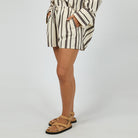The Rosa Stripe Shorts (All About Eve Clothing) are a warm-weather must-have, crafted in a breathable cotton blend with classic brown stripes on a vanilla base. A soft tie at the front adds a relaxed, adjustable fit for all-day comfort. Pair them with the matching Rosa Stripe Shirt for an easy, elevated co-ord made for sunny escapes.