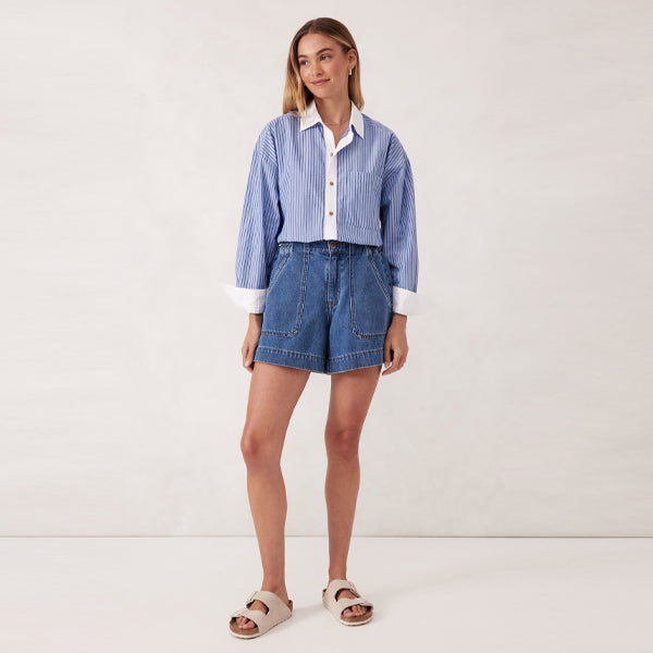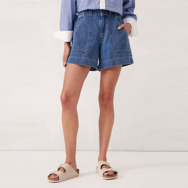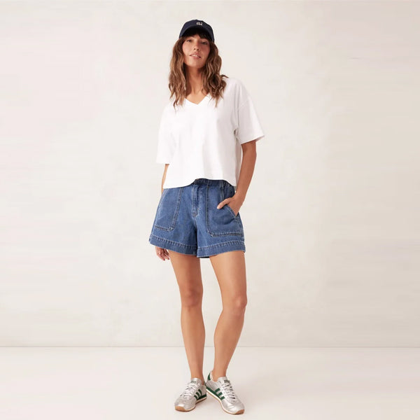 The Weekender Short (Ceres Life) is your new everyday essential. Made from mid-weight denim with a soft hand-feel and 100% organic cotton, it combines comfort and style effortlessly. Large angled patch pockets add a cool detail, while half waist elastic ensures all-day comfort. Finished with a deep hem, it’s perfect for endless Summer days by the beach.