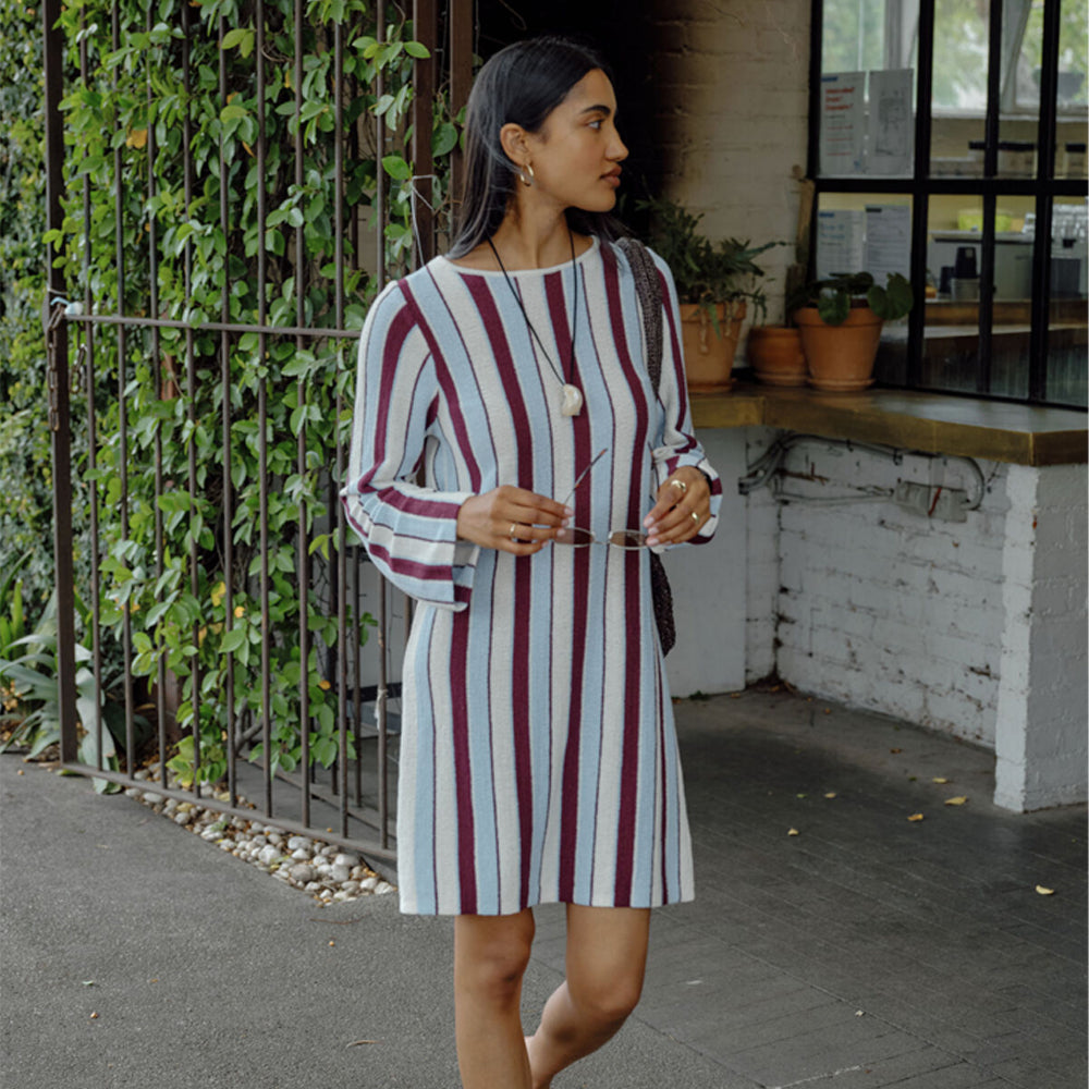 The Chloe Stripe Knit Mini Dress (Ceres Life) is crafted from 60% organic cotton in a softly textured knit with a dry hand feel. With long sleeves and a mini length, it’s that effortless, one-and-done piece that simplifies your wardrobe without compromising on style or comfort. Pop on some sandals and you’re ready for the day.