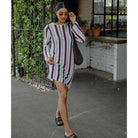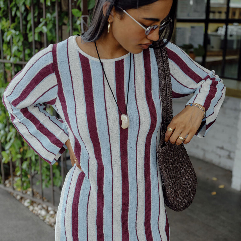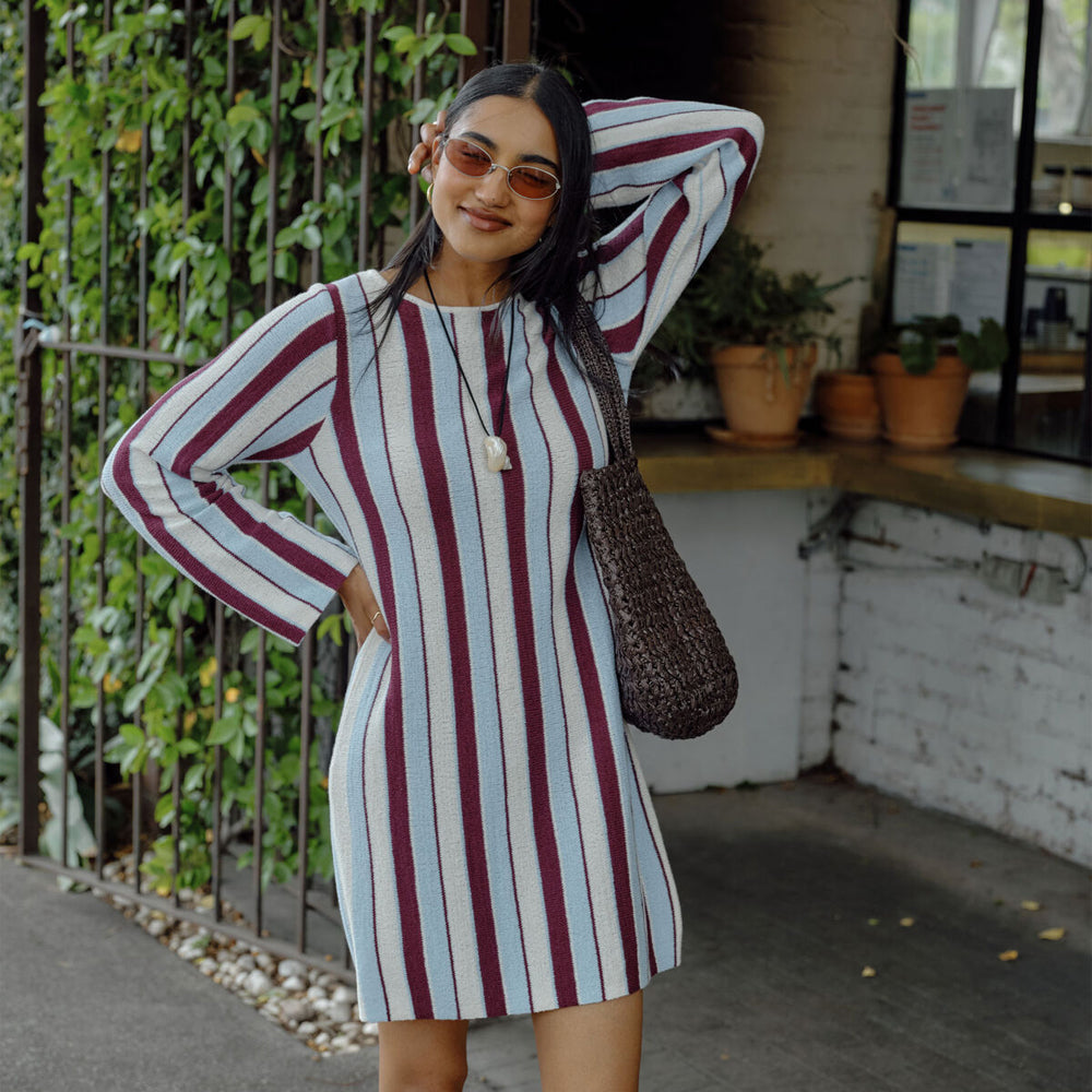 Chloe Stripe Knit Mini Dress - Blue Wine Stripe