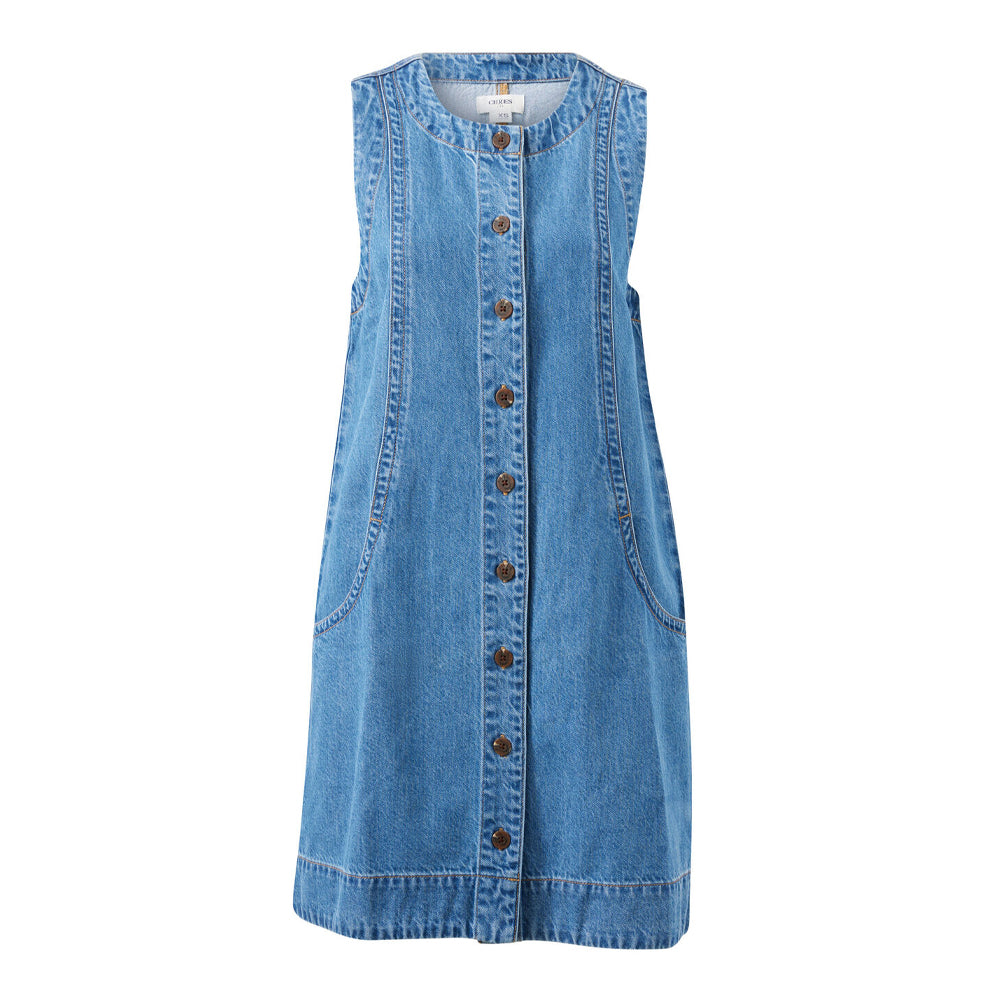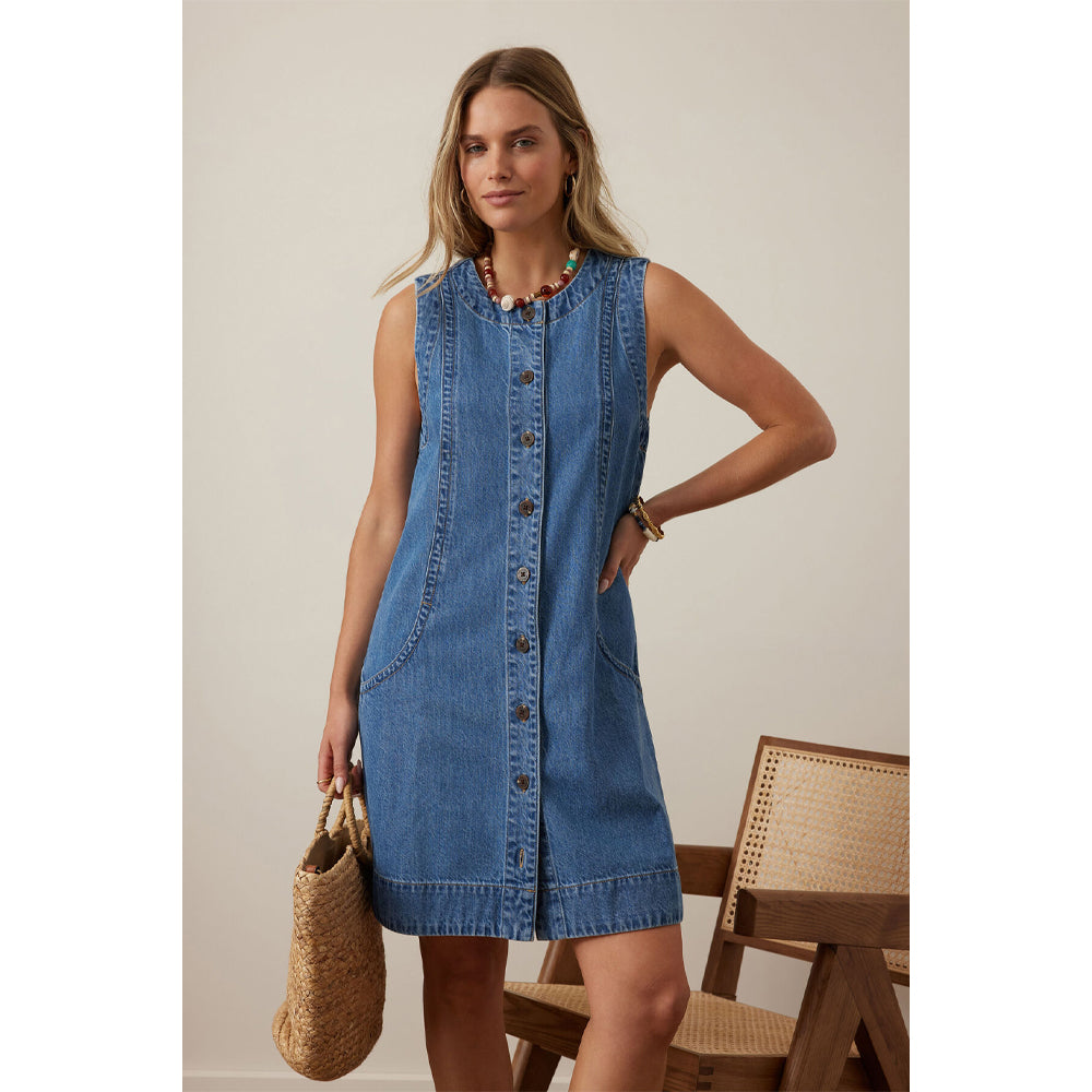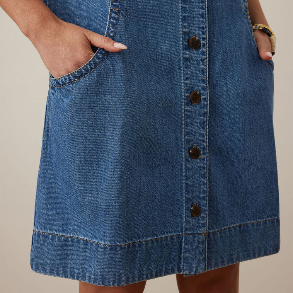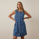 Meet the Suki Shift Dress (Ceres Life) - crafted from mid-weight denim using 41% TENCEL™ for soft handfeel. Featuring a mini length and classic shift silhouette this dress offers effortless style. With functional buttons and discreet in seam pockets, this dress blends function and style. Pair back with sandals and you’re ready for the day.
