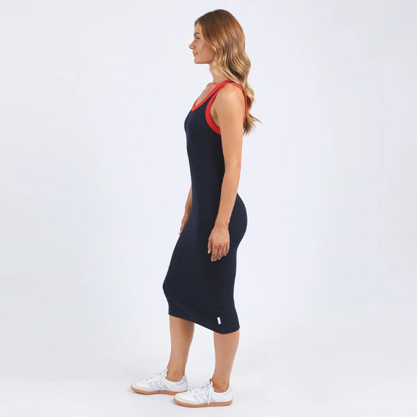 A classic tank dress with a pop of colour! The Union Rib Contour Dress is both comfortable and effortless to wear. Add your favourite trainers for a sporty look or some sandals for the ultimate off to the beach babe wear.