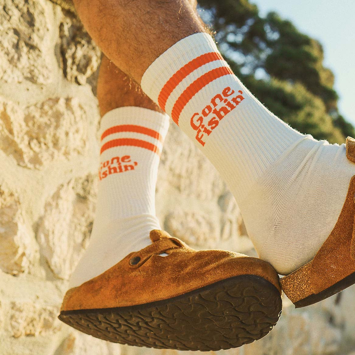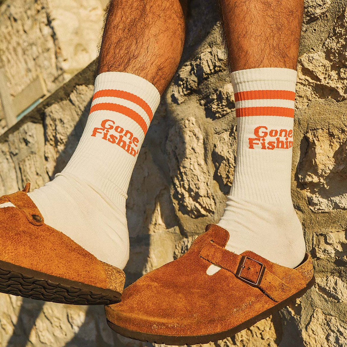 Made from a soft and stretchy cotton blend, these retro-inspired Gone Fishin' Socks feature playful knitted Aussie slang, a comfy ribbed cuff to keep them in place, and a lightweight, breathable feel for all-day wear. Perfect for adding a cheeky twist to everyday outfits, because every day’s a winning day.