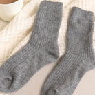 The Comfiest Socks are made from 8% Cashmere Wool for softness and comfort, 82% rPET for durability and moisture-wicking capabilities, and 10% elastic for stretch.