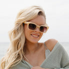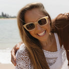 These popular 90s inspired SOEK sunglasses are a mid-sized style to suit most face shapes and sizes. Zahra are finished in a flattering cream tone and fitted with white maple wood arms.