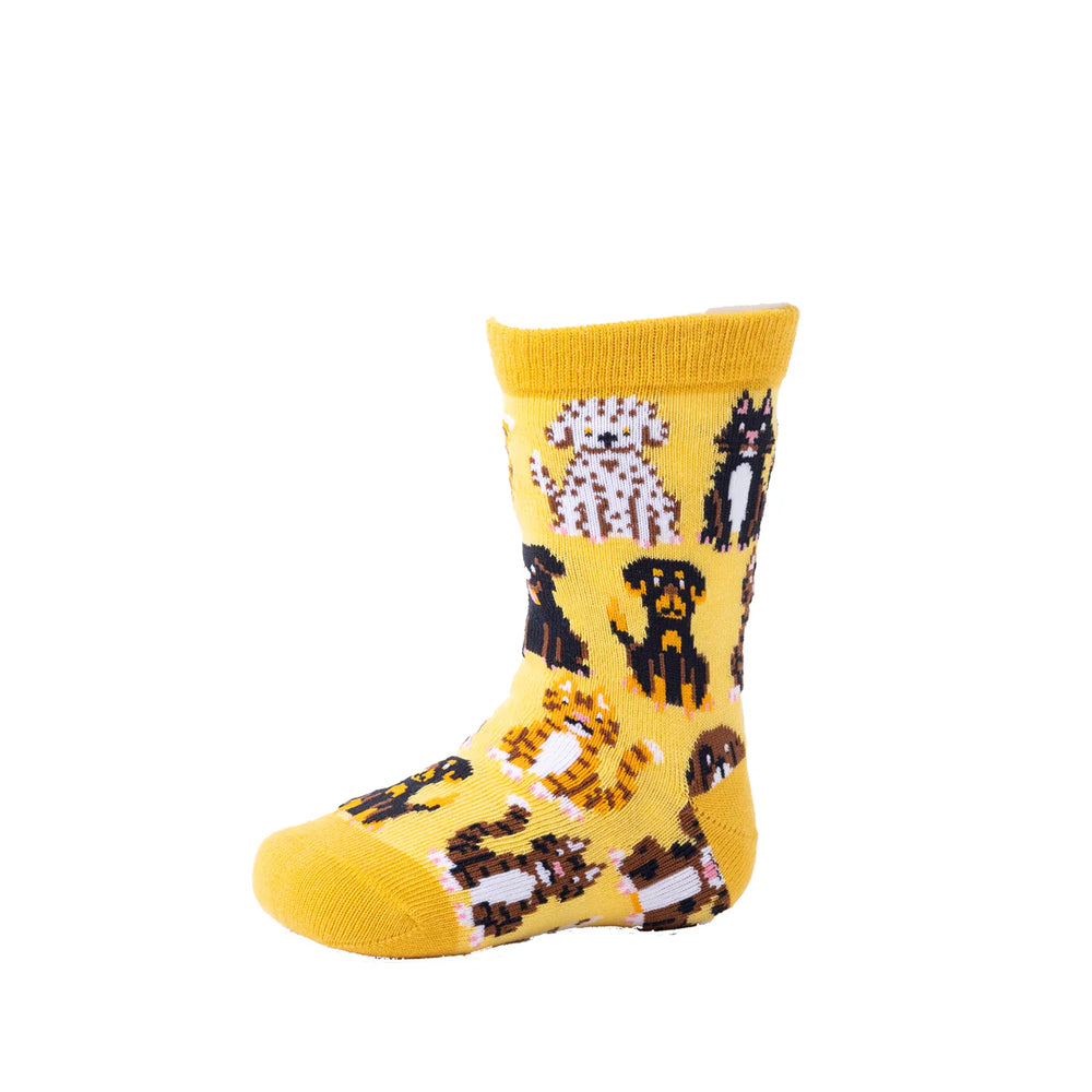 These socks are the cat's meow and the dog's bark all rolled into one. Featuring a paw-sitively adorable pattern of cartoon cats and dogs on a yellow background, these socks will have you feline fine from head to toe.