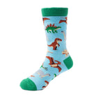 These socks are a roaring good time for your feet. Step into prehistory with our dino-mite design, featuring a herd of colourful cartoon dinosaurs frolicking on a light blue landscape - from the mighty T-rex to the long-necked brontosaurus. Whether you're a paleontology buff or just looking to add some Jurassic spark to your wardrobe, these socks are guaranteed to be a conversation starter.