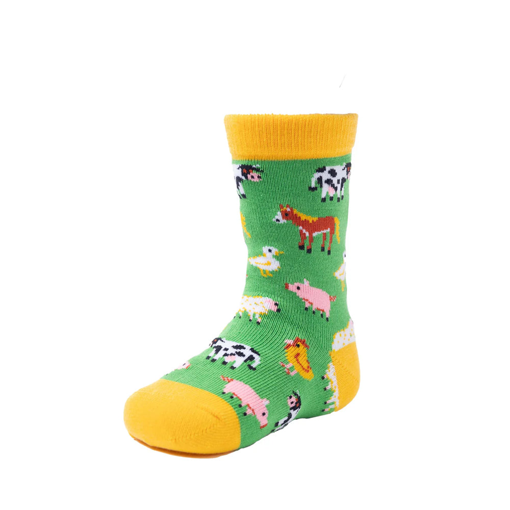 These socks are a barnyard bonanza for your feet. With a menagerie of cartoon critters frolicking on a green backdrop, they're sure to make you the talk of the flock. From moo-velous cows to pretty-in-pink pigs, these socks are perfect for animal lovers and farm fanatics alike. Whether your kid's a city slicker or a country bumpkin, these socks will have their strutting their stuff with farmyard flair. So put your best hoof forward and let your feet graze in style.