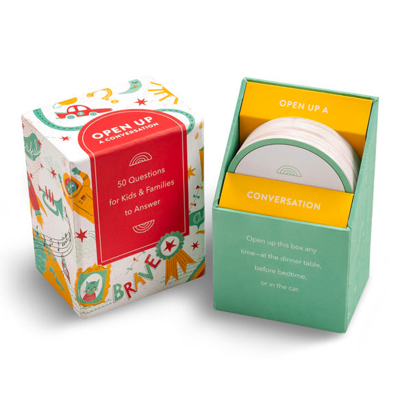 Inside this box are 50 conversation starters — questions you can ask at the dinner table, before bedtime, or in the car.