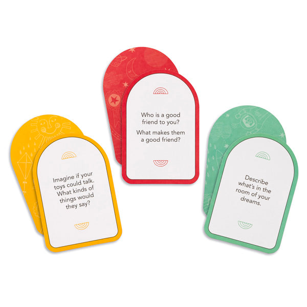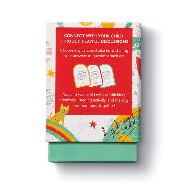 Perfect for ages 5 and up, the set’s 50 fun-filled conversation starters are sure to spark your child’s imagination and create enjoyable bonding time: