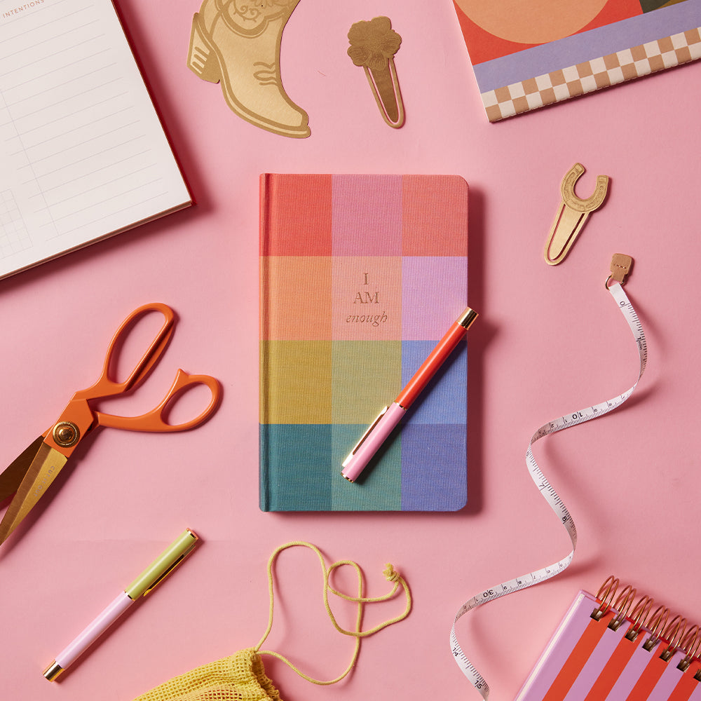 Sure to spark creativity, this journal is for the colour lover - a joyful reminder that you are enough. Make writing and journalling part of your daily routine with the Rainbow Check Bookcloth Journal, and keep all your thoughts and dreams in one place.