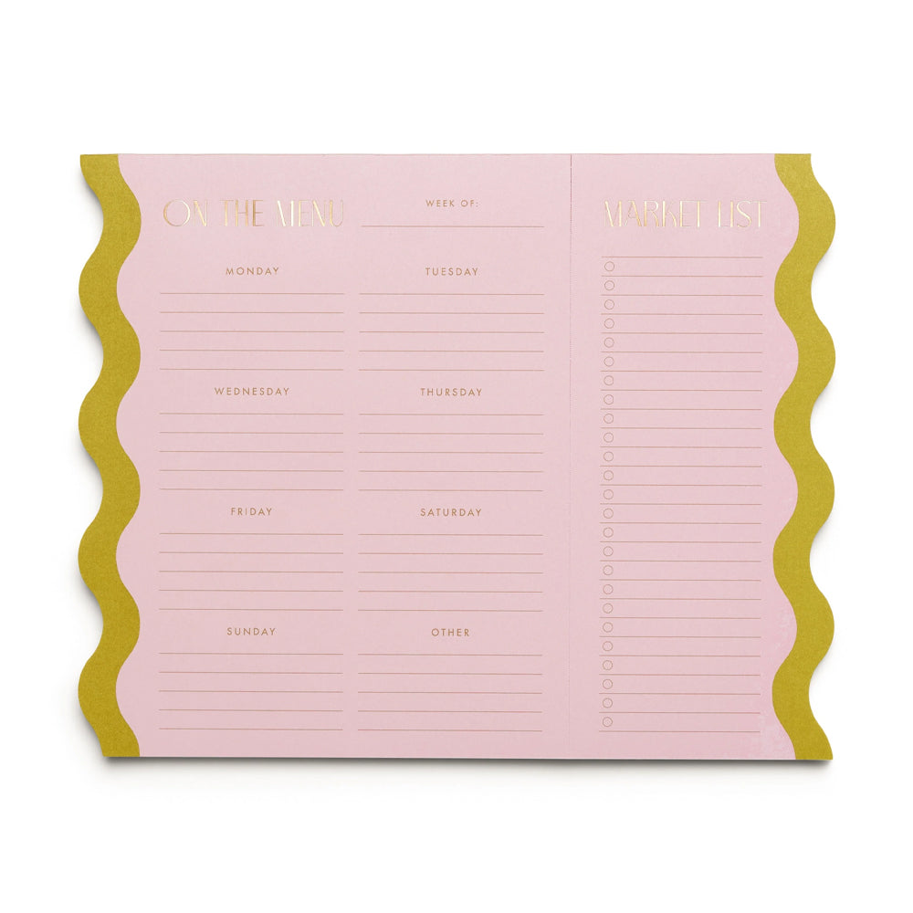 These mod notepads put the “fun" in functional, with fresh colors, scalloped borders, and designated sections for weekly “on the menu” and “market list” items. Each 60-page notepad is designed with mounted magnets on the back for easy hanging, ideal for fridge display.