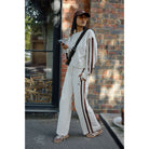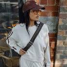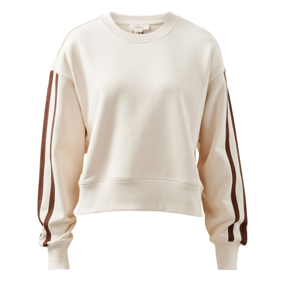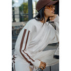 Sasha Sporty Slouchy Crew - Buff Chocolate Side Stripe