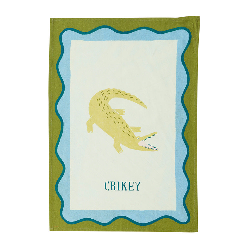 Never ones to take ourselves too seriously, the Crikey Tea Towel joyfully celebrates the Aussie way. Featuring a wavy border, crocodile motif and a simple "Crikey", she's a real bewdy.