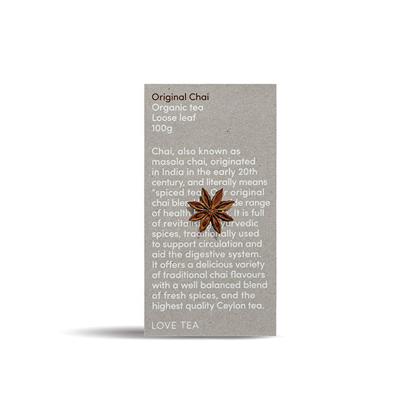 Chai, also known as masala chai, originated in India in the early 20th century, and literally means “spiced tea”. Our original chai blend has a wide range of health benefits. It is full of revitalising ayurvedic spices, traditionally used to support circulation and aid the digestive system. It offers a delicious variety of traditional chai flavours with a well balanced blend of fresh spices, and the highest quality Ceylon tea.