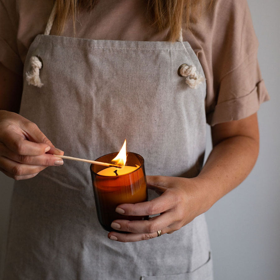 Each candle is made from pure soy wax, eco-friendly & non-toxic cotton wicks, recycled bottle amber jars & finished with custom raw wooden lid. Australian made & hand poured.