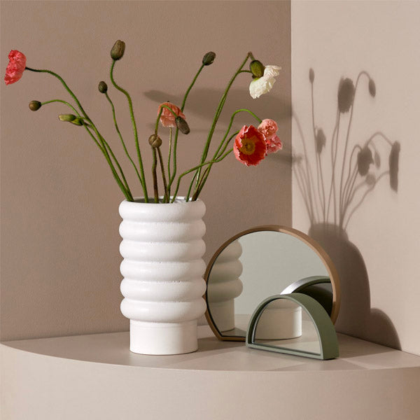 Exploring geometry and reflection, these double-sided freestanding decorative Objekt mirrors are a playful way to add visual interest to a shelf or sideboard. Each Objekt has a regular mirrored side and a tinted mirror side, allowing for multiple looks and experimentation, especially when grouped together with other products from the Objekt range.