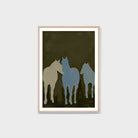 Add colour and interest to your space with this hand-generated print, depicting three abstract horses in tones of green and blue.