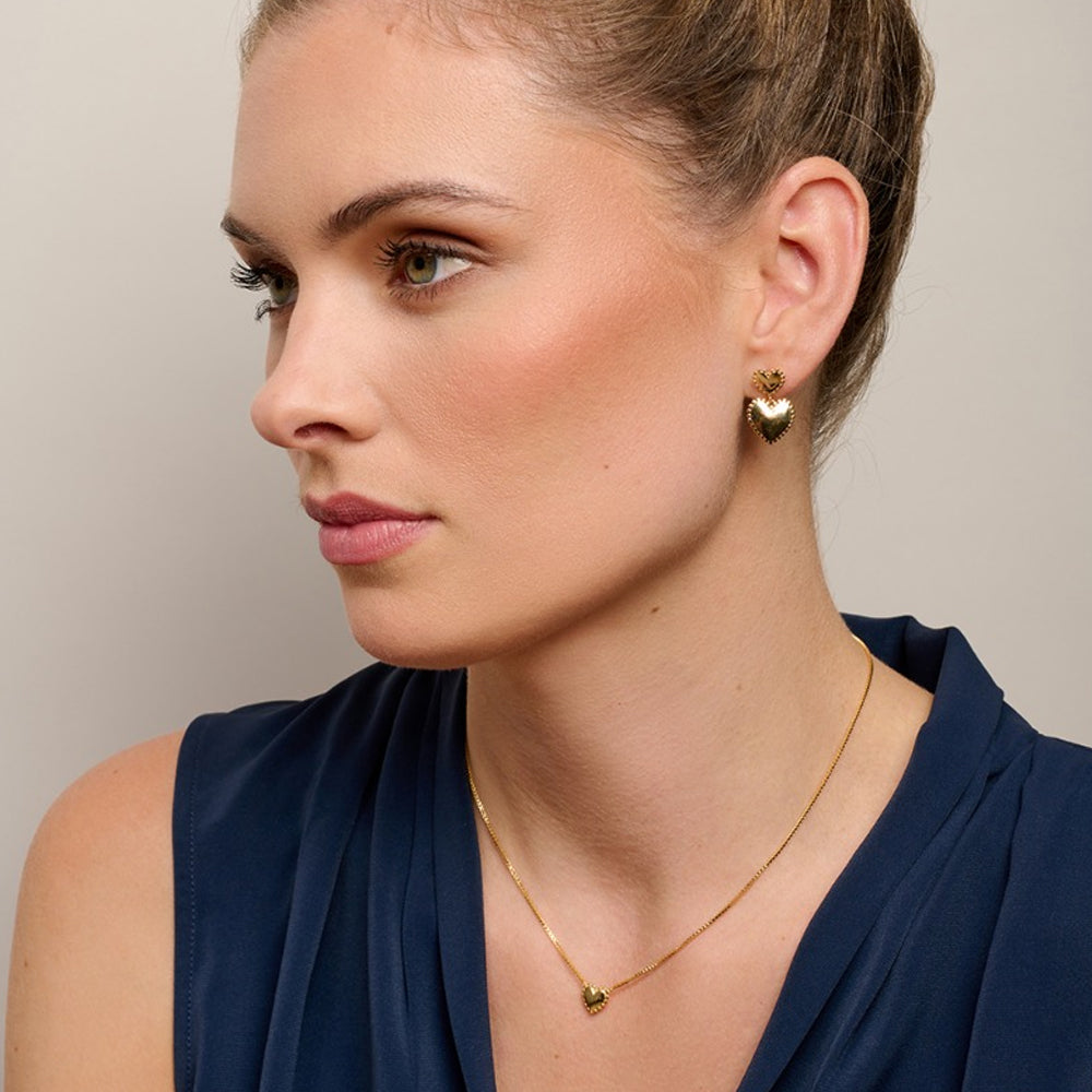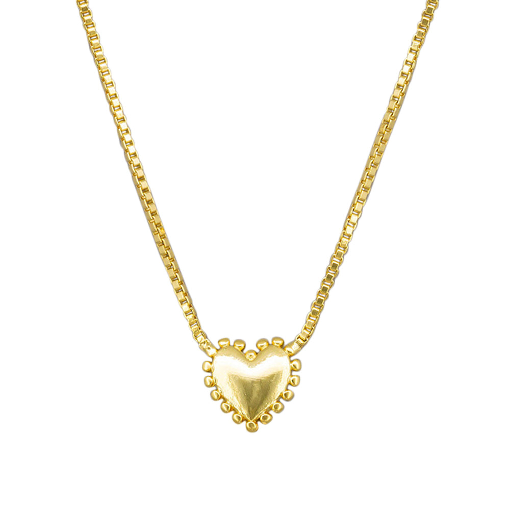 This sweet gold necklace features a simple heart pendant on a tight link chain.