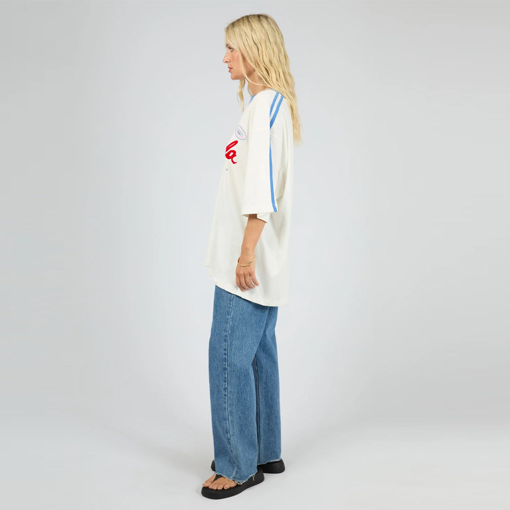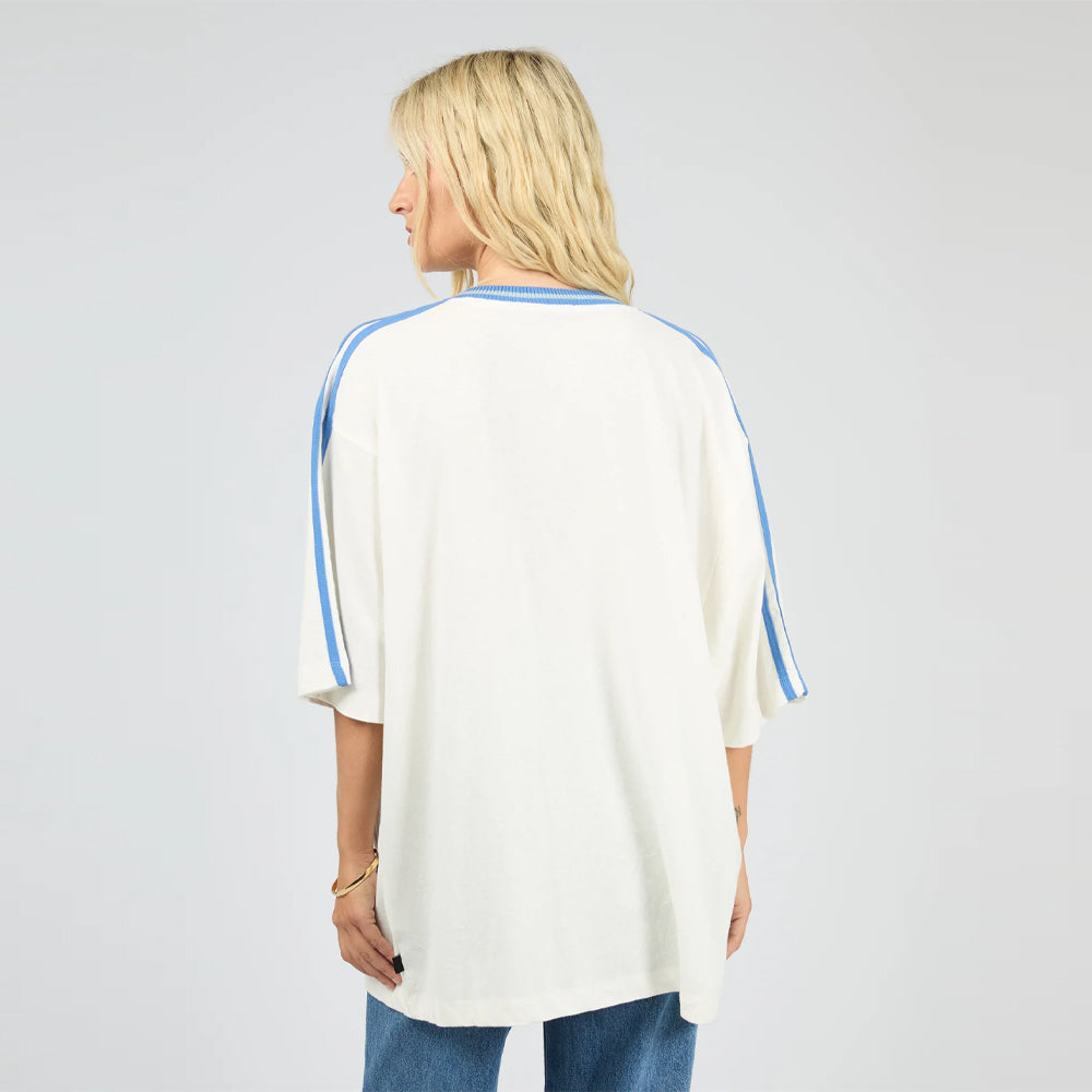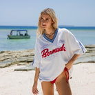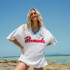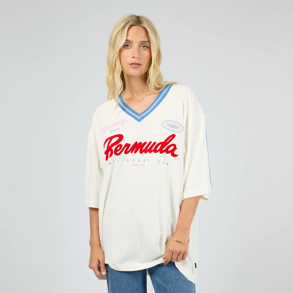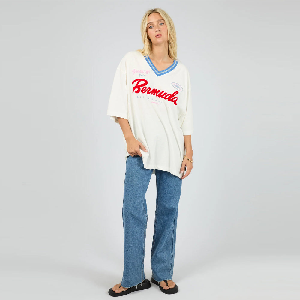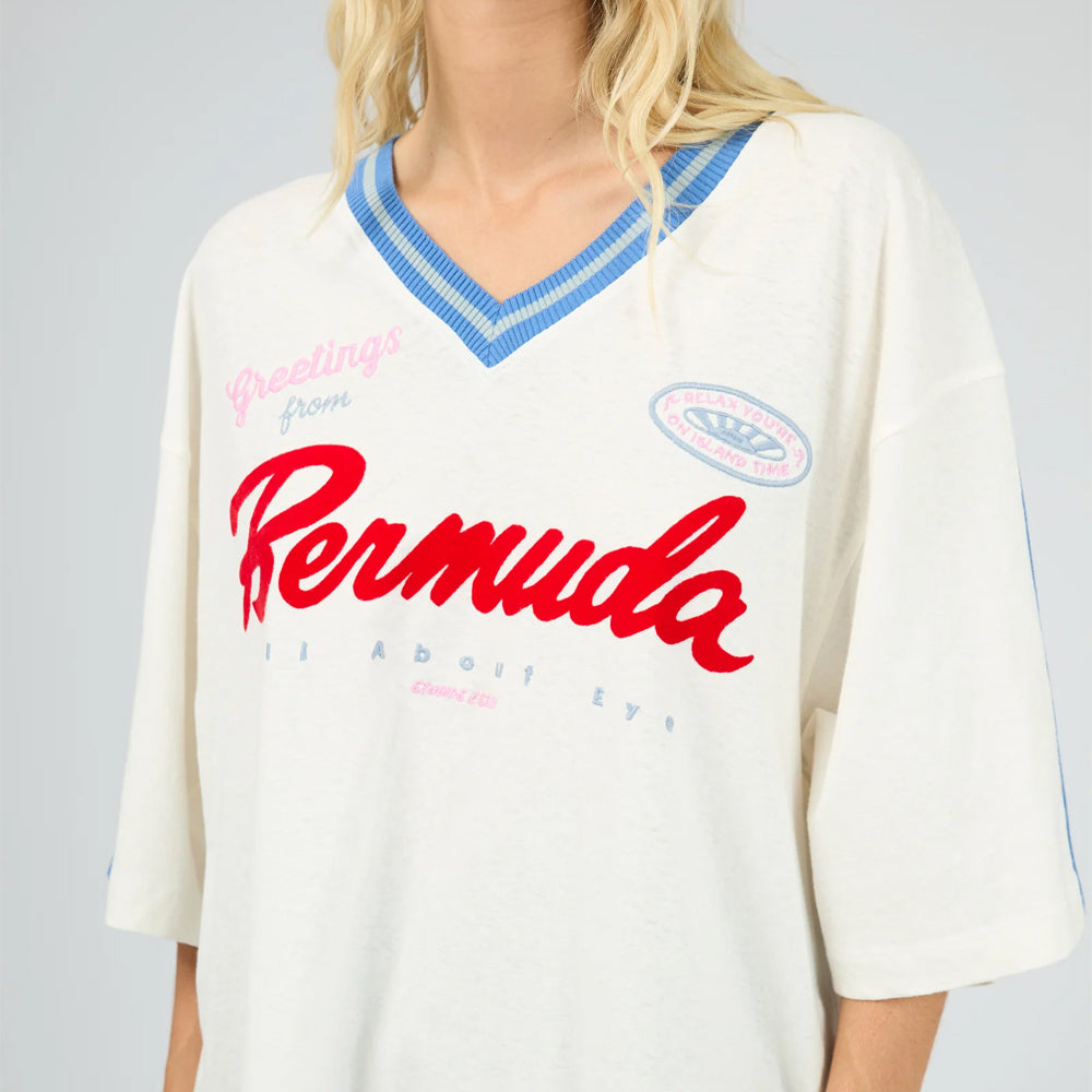 The Bermuda Oversized V-Neck Tee (All About Eve Clothing) brings a fresh twist to a classic Summer staple. Made from breathable cotton-linen, it offers a soft, lightweight feel with a relaxed oversized fit. The contrast detailing on the V-neckline and along the sleeves adds a sporty touch. This tee is designed for all-day comfort and effortless style. It's the perfect throw-on piece for easy summer dressing.