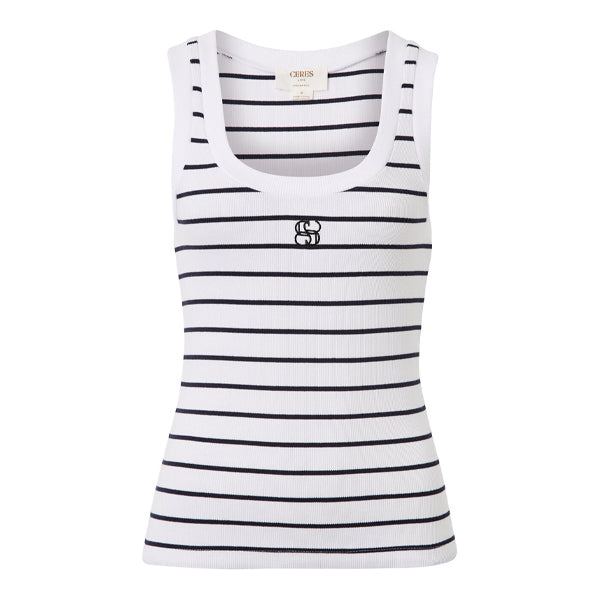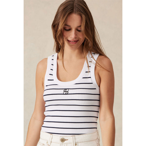 Zoe Contour Rib Scoop Tank - White + New Navy Monogram