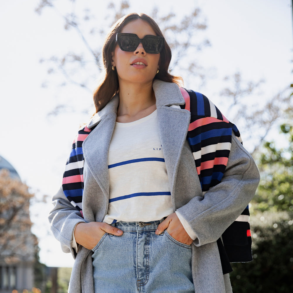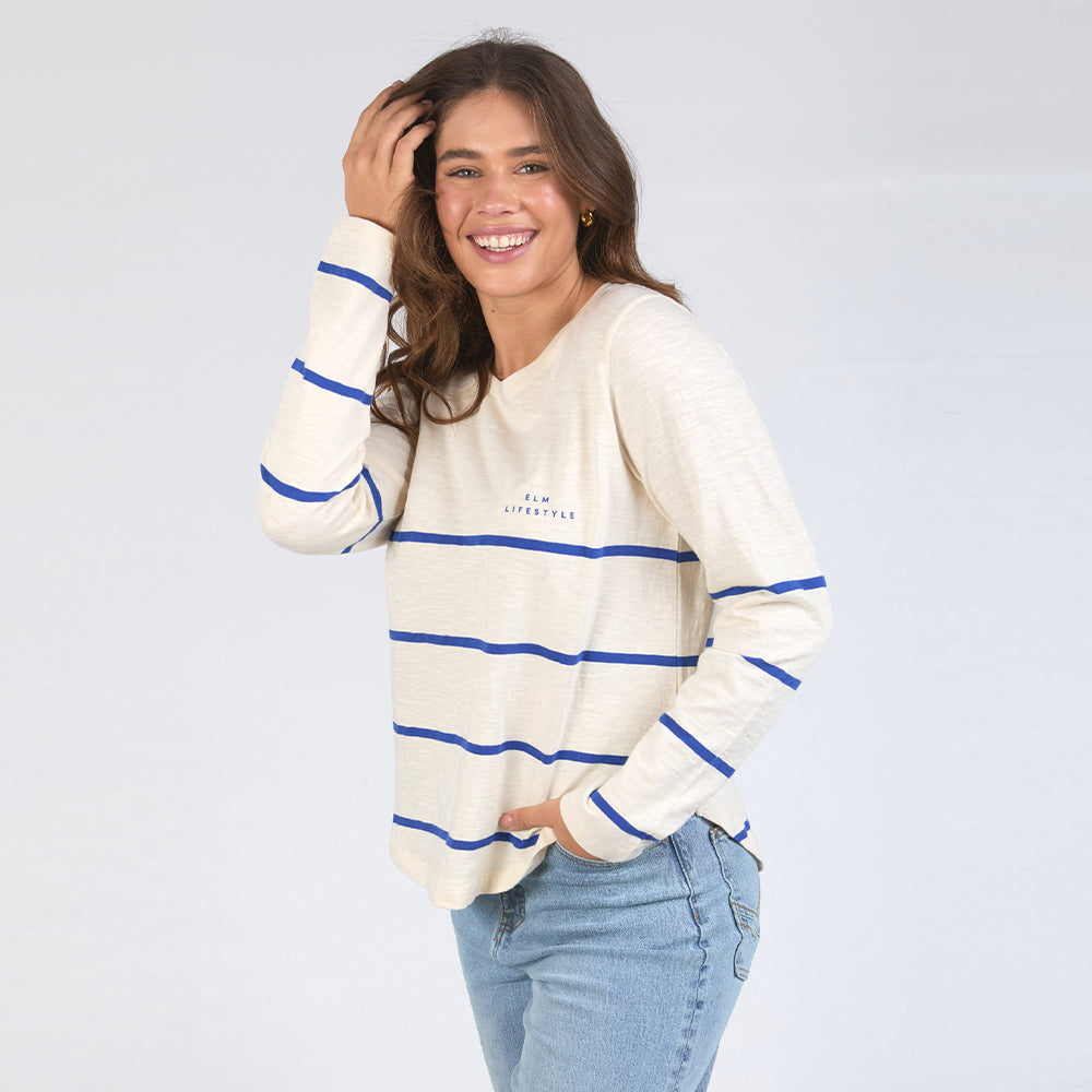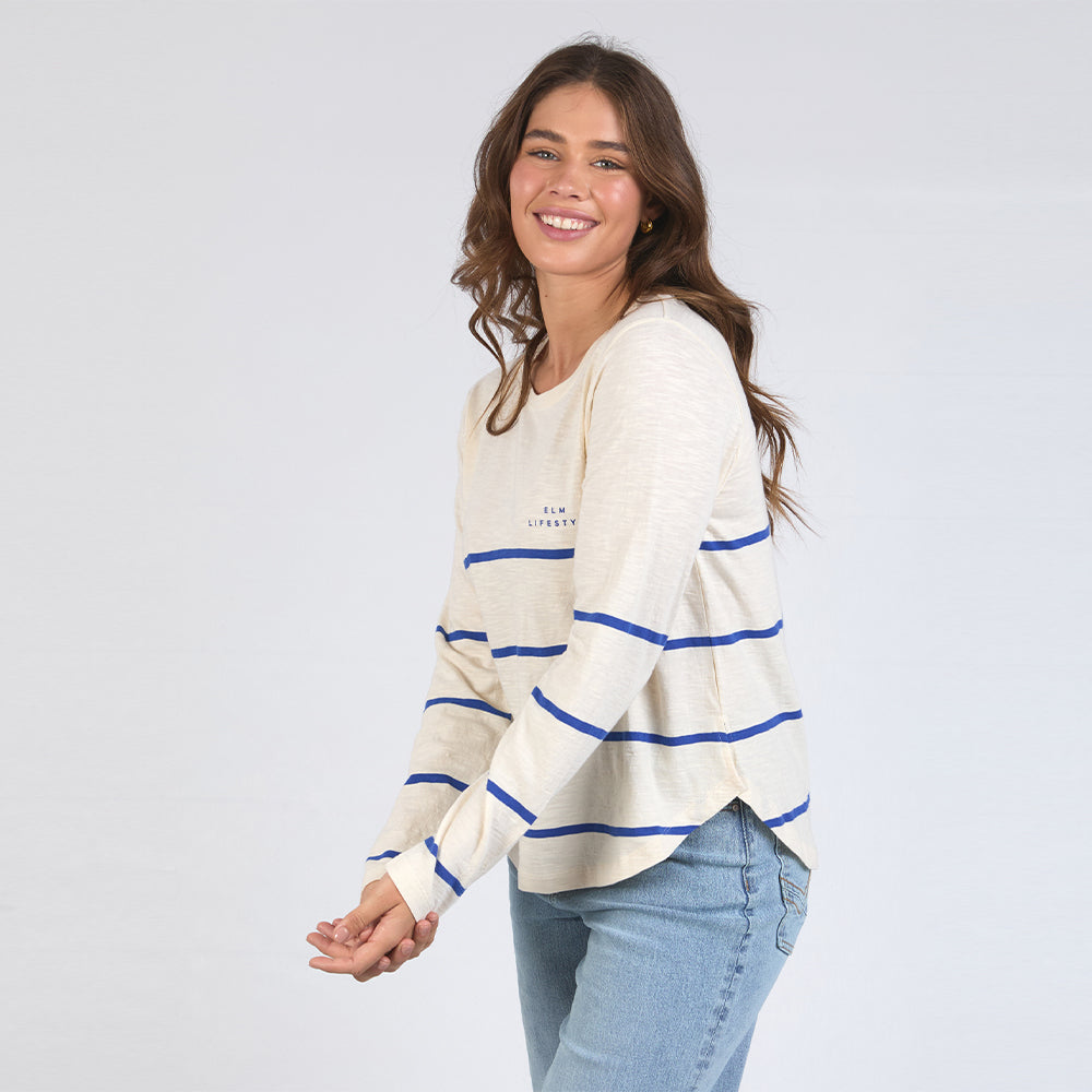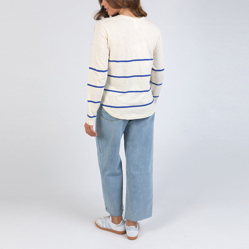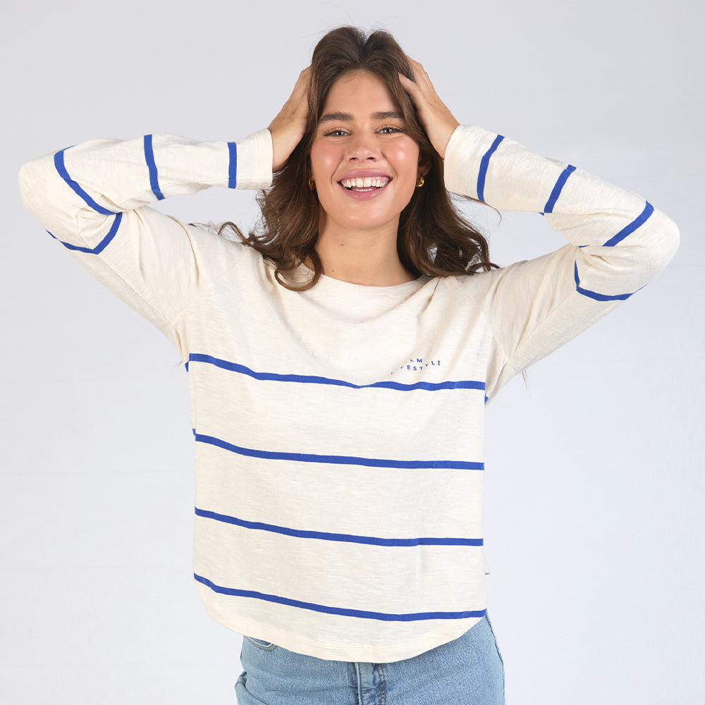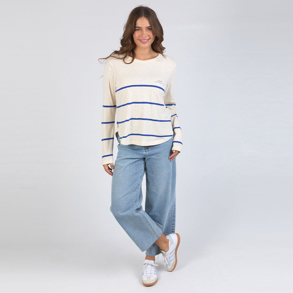 Crosby Long Sleeve Tee - Blue + White Stripe