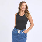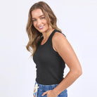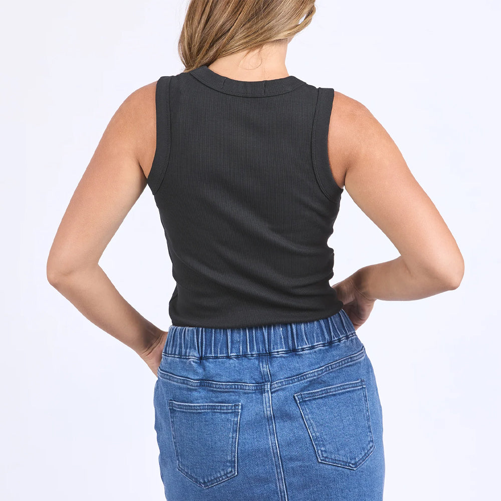 Your perfect basic, the Iris Tank (Foxwood Clothing) is made from soft rib fabric with a straight hem and classic round neckline. Simple, comfy, and ready to be your everyday go-to for layering or wearing solo.