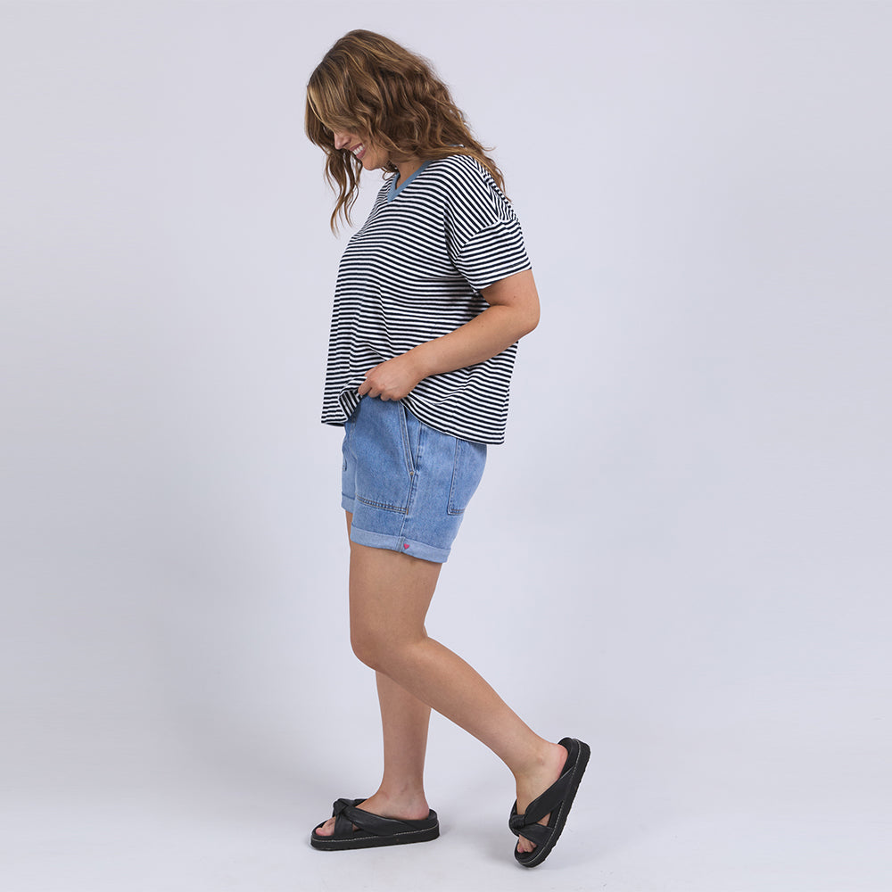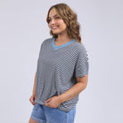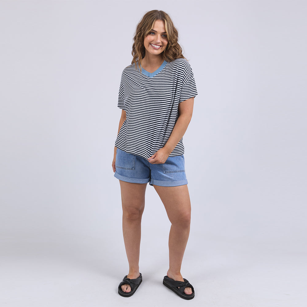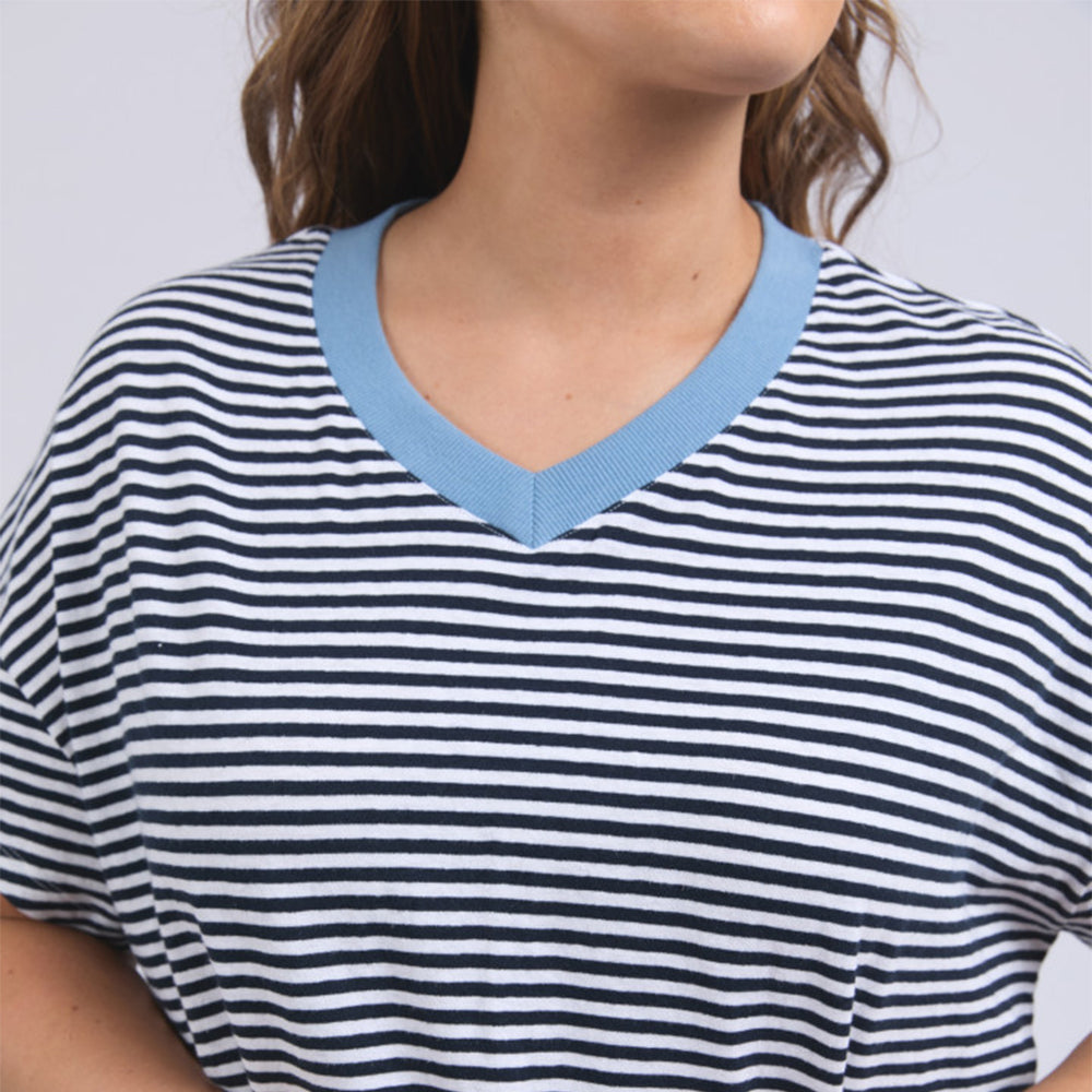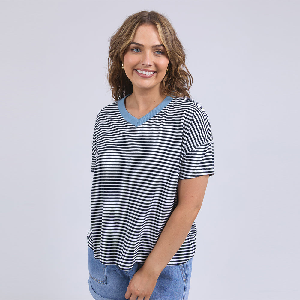 Liv Vee Tee - Navy + White Stripe