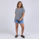 Have some fun in stripes this season with the Liv Vee Tee (Elm Lifestyle Clothing). Featuring a pop of colour on the neckline which adds to the appeal of this otherwise classic tee.
