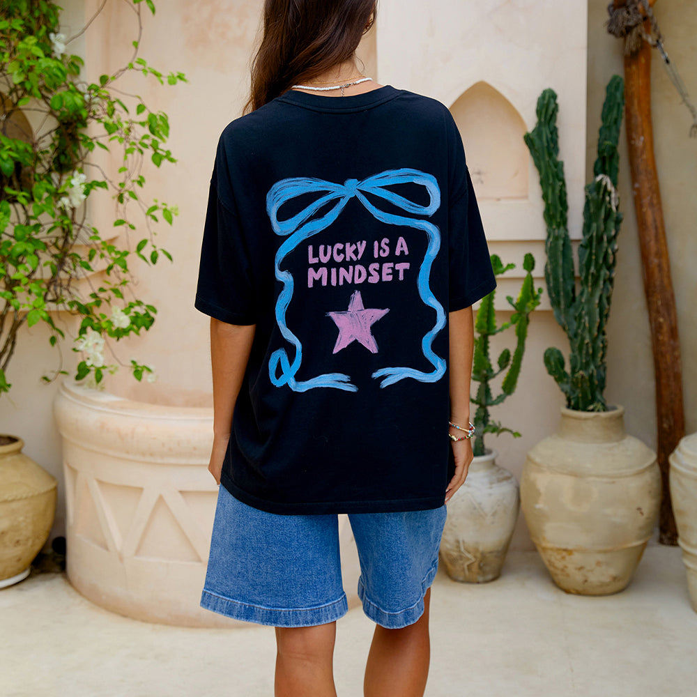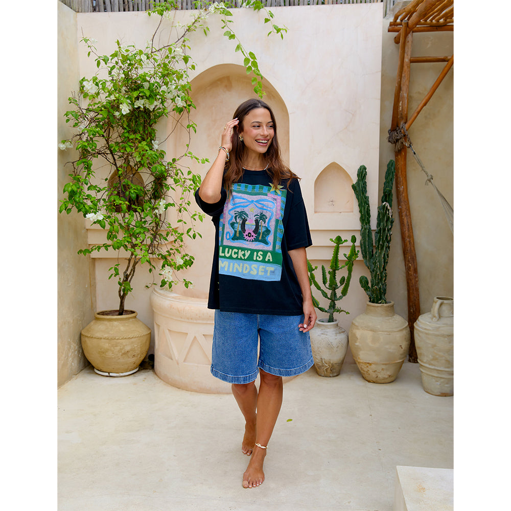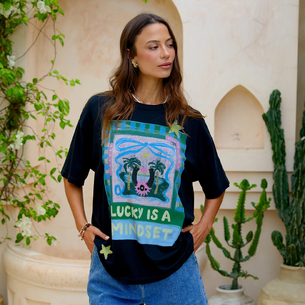 Lucky looks good on you. The Lucky Star Tee (Foxwood Clothing) brings that sun kissed, carefree energy with soft cotton, faded pastel vibes and hand painted artwork made for dreamers. It’s got that worn in feel, like it’s already lived a few beach days and late nights. A reminder that good energy is a choice and luck really is a mindset.