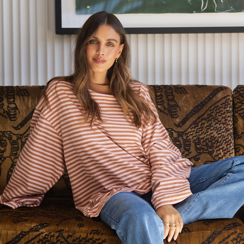 Paloma Long Sleeve Stripe Tee - Cinnamon