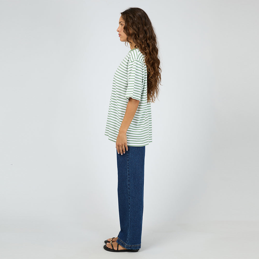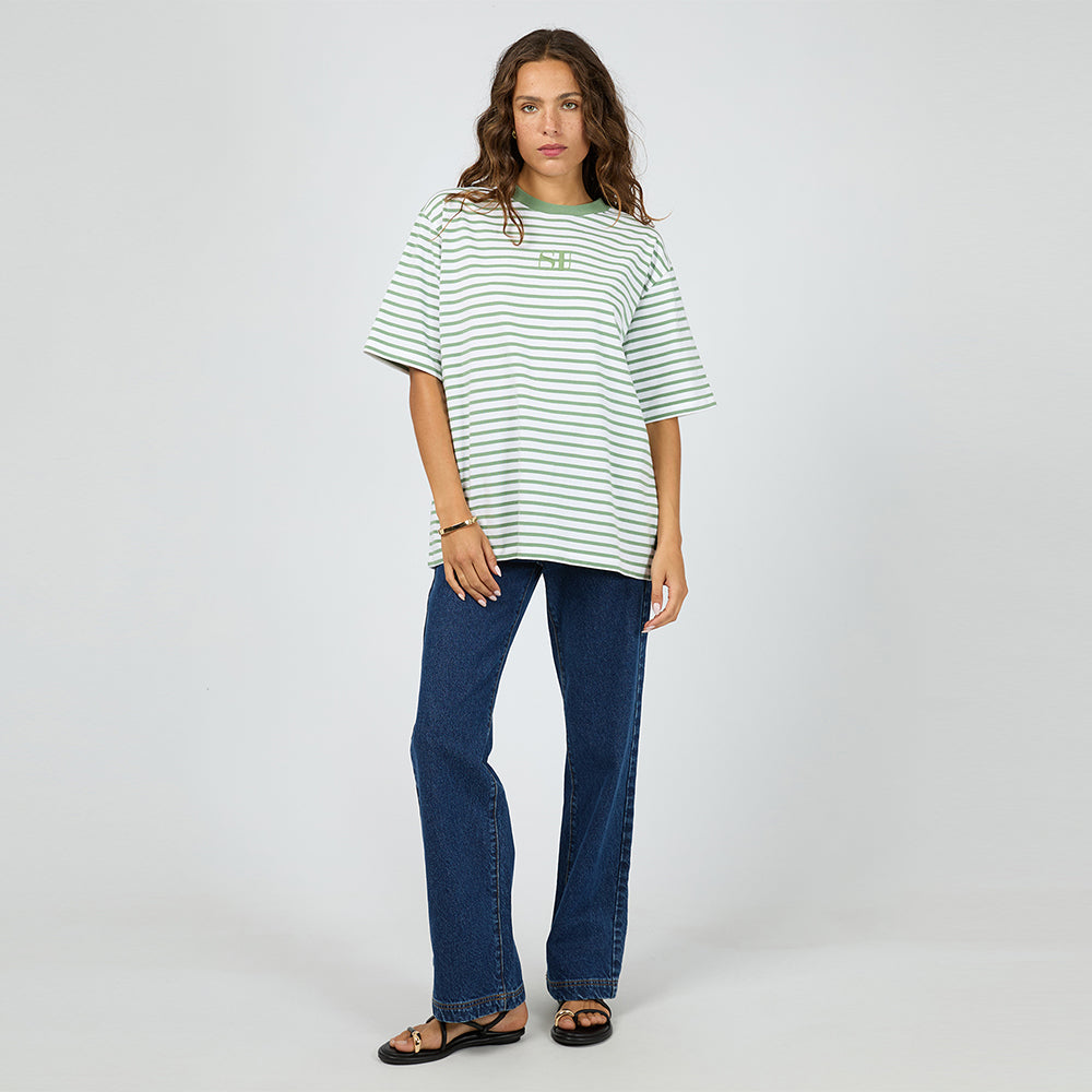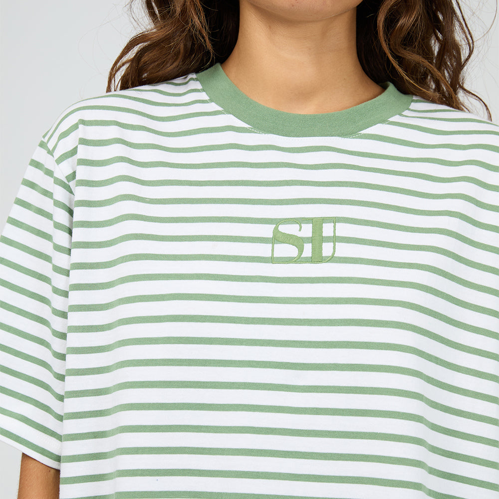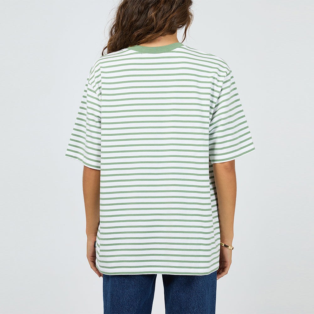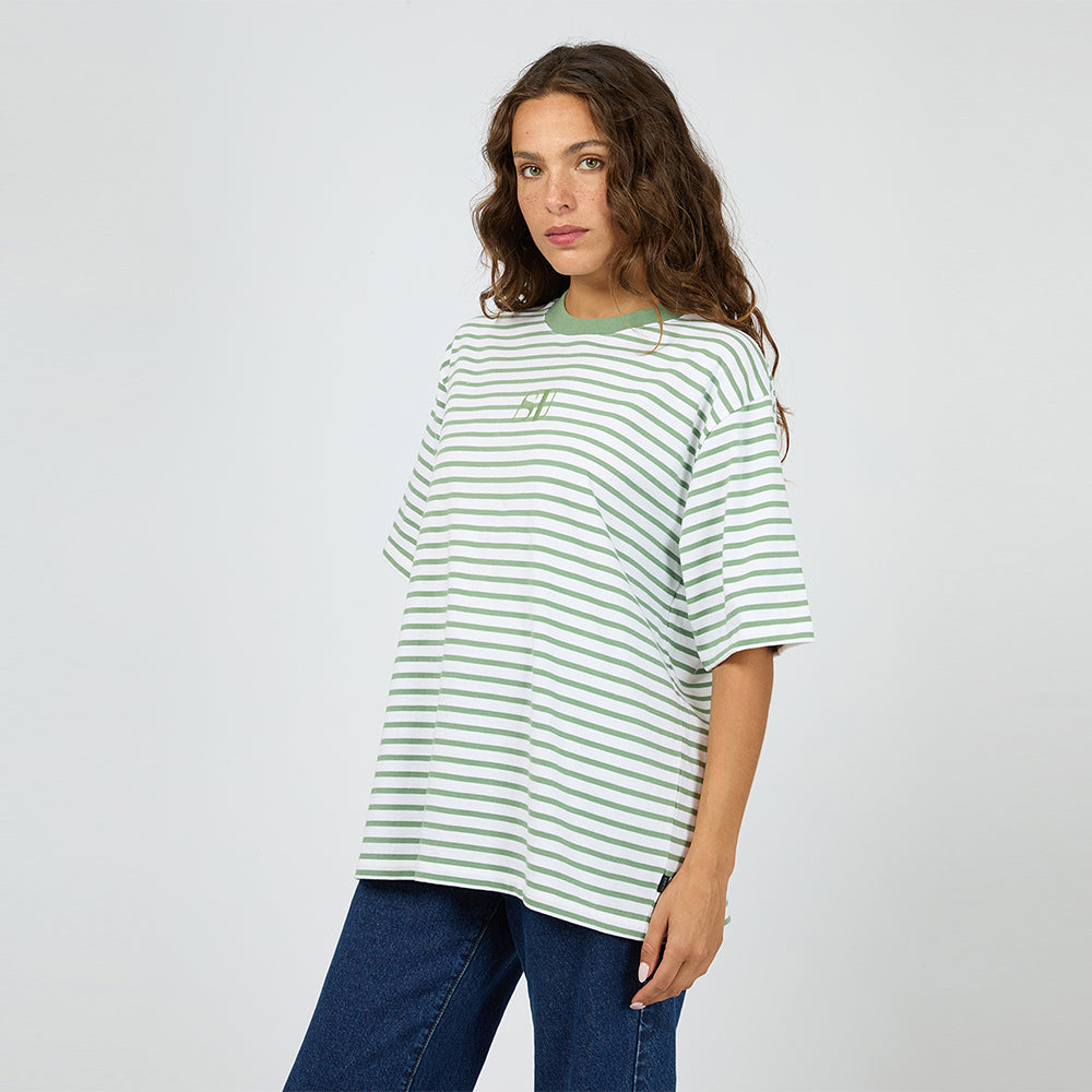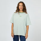 Elevate your basics with our Silent Stripe Short Sleeve Tee (Silent Theory Clothing). Made from a soft heavy weight jersey this tee has an oversized fit that keeps its structure as well as a branded embroidery and yarn dyed stripe design. From walks with friends to work, this tee can take you anywhere.
