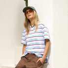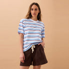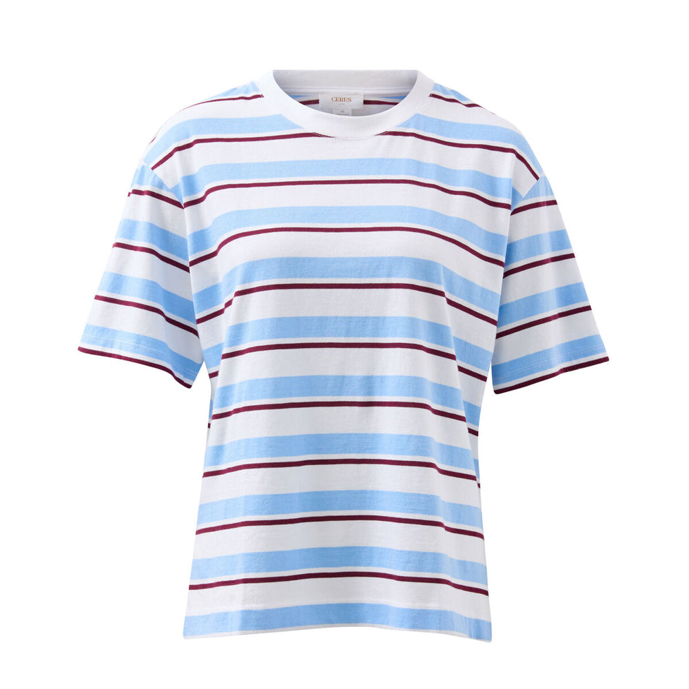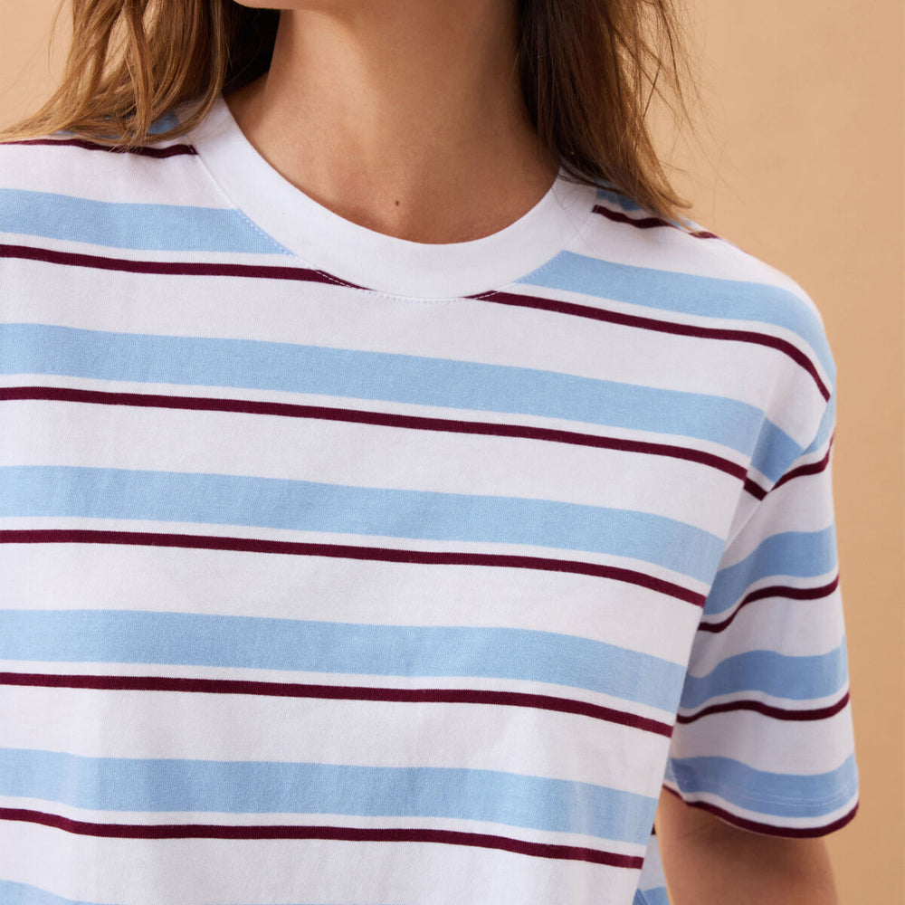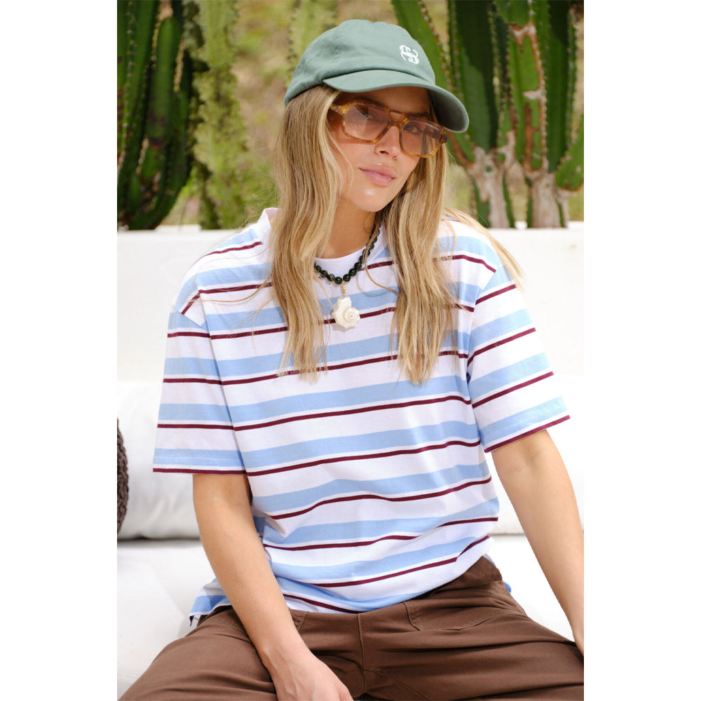 Stevie Slouchy Tee - Powder + Pomegranate Retro Stripe