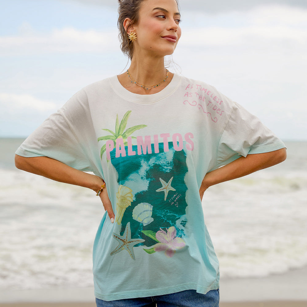 Catch the calm with the Timeless Tides Tee (Foxwood Clothing). Washed in dreamy ocean tones and finished with hand drawn artwork, this tee feels like a deep breath by the sea. With its oversized fit and soft cotton feel, it’s made for slow mornings, salty hair and chasing sunsets. It comes in waves, and we’re here for every one of them.